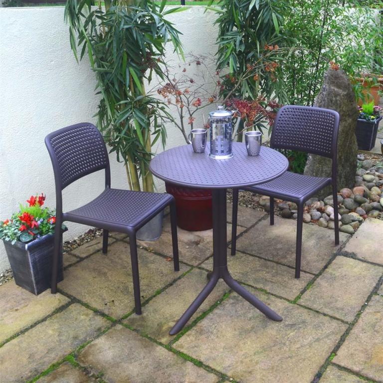 Стол Step из стекловолокна с круглой столешницей с небольшими декоративными перфорациями, которые также эффективно выполняют функцию дренажа. Вы легко можете сделать его как обеденным столом с высотой 765 мм, так и кофейным столиком высотой 400 мм.