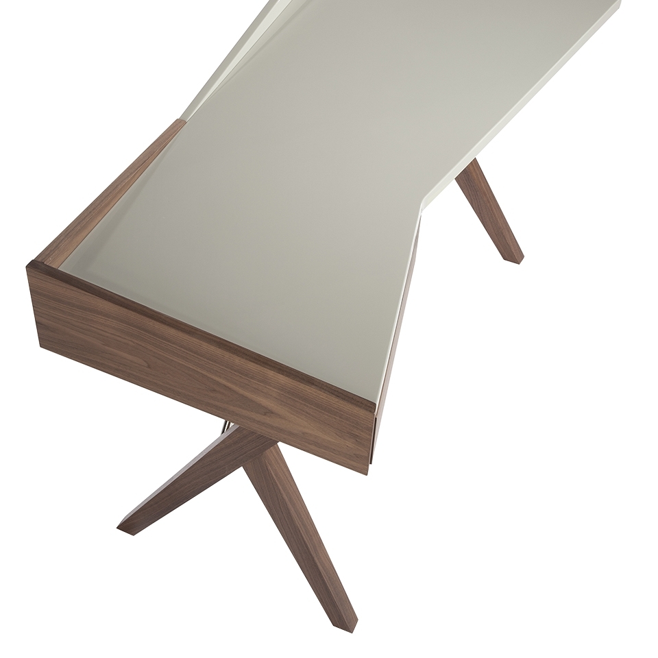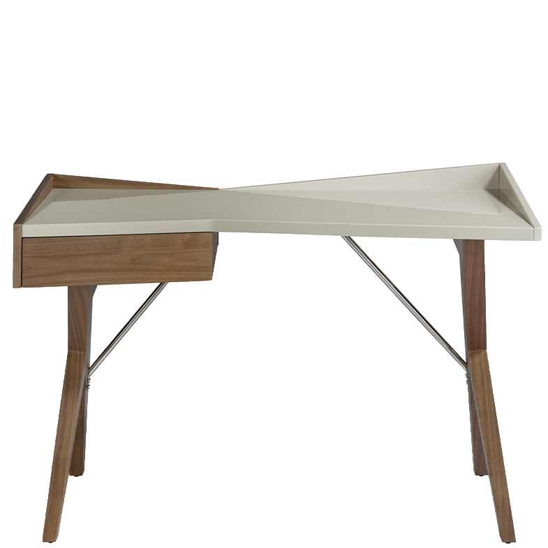 Стол Comodidad из одноименной коллекции от фабрики Angel Cerda — дизайн, выходящий за рамки привычного. Стол Comodidad — это настоящее творение испанских дизайнеров. Модель сильно выделяется среди других столов своей ломаной геометрической формой. Асимметрия бортиков вызывает обманчивое убеждение в том, что края столешницы имеют разную высоту. Такой визуальный эффект — верх мастерства и таланта создателей данной модели. Стол — настоящая находка для тех, кто ищет для своего интерьера не просто оригинальные, а уникальные изделия. Стол конструкционно состоит из двух составляющих — пятиугольной столешницы и стойки с четырьмя ножками. Столешница сделана из лакированного МДФ. В зависимости от выбранной модели, она может быть белого, жемчужного, желтого, серого цвета, а также любого цвета палитры RAL по заказу. В центре столешницы «вырезан» сектор, что визуально разделяет ее на две половины. Вдоль боковых и задней грани проходят бортики, имеющие разную высоту по отношению к горизонтальной поверхности. Слева — выдвижной ящик с доводчиком. Подпирает столешницу опора, имеющая две пары крестовых ножек и хромированные подпорки для повышения устойчивости и прочности. Ножки также, в зависимости от выбранной модели, отличаются цветом — белый и серый глянцевые, а также дуб и орех. Размеры изделия: длина — 120 см, глубина — 60 см, высота — 81 см. Стол поставляется в разобранном виде. Инструкция по сборке и крепеж входят в комплектацию.