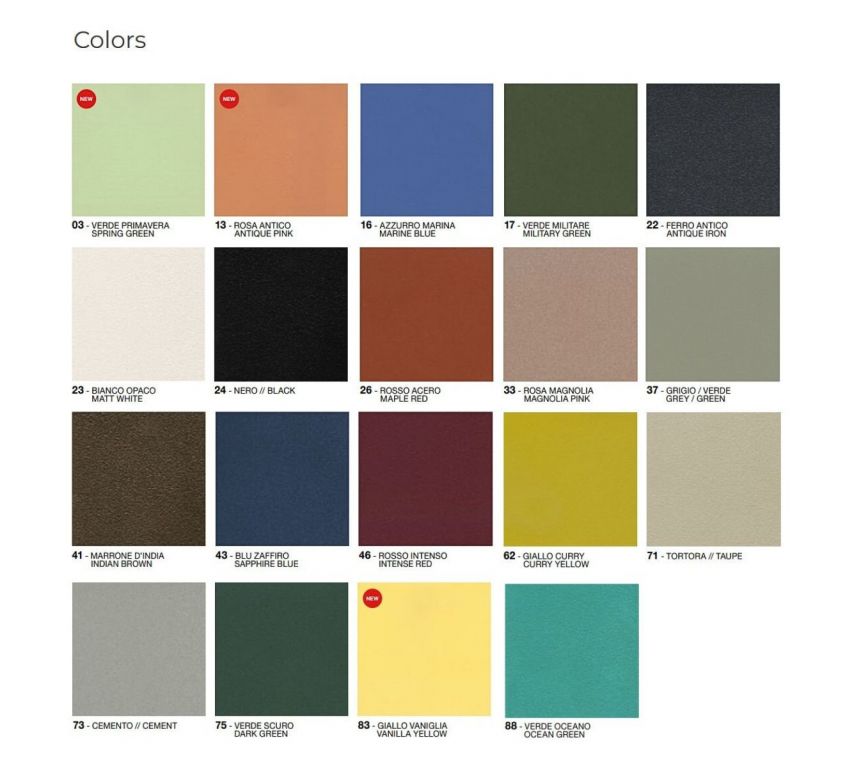- Материал: окрашенная сталь. Состав: железо и углеродный сплав с содержанием углерода менее 2%, обработанные, чтобы выдерживать воздействия окружающей среды, с помощью уникально антикоррозионной обработки EMU-Coat.