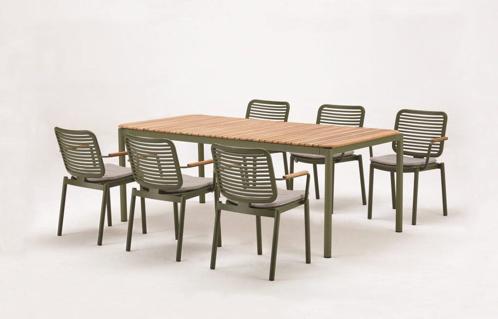 Универсальный уличный обеденный стол Armona с красивой реечной столешницей из тикового дерева и алюминиевой рамой. Этот классический стол станет изысканным и элегантным дополнением к Вашему заднему двору или открытому пространству. Детализированная рама стола с ножками уникальной изогнутой формы придает столу характер и солидность. Обеденный стол Armona спроектирован и изготовлен так, чтобы выдерживать любые погодные условия. Вместе с креслами из одноименной серии это идеальный выбор для открытых площадок кафе, ресторанов, баров или даже Вашего собственного двора, настоящее воплощение стиля и функциональности.