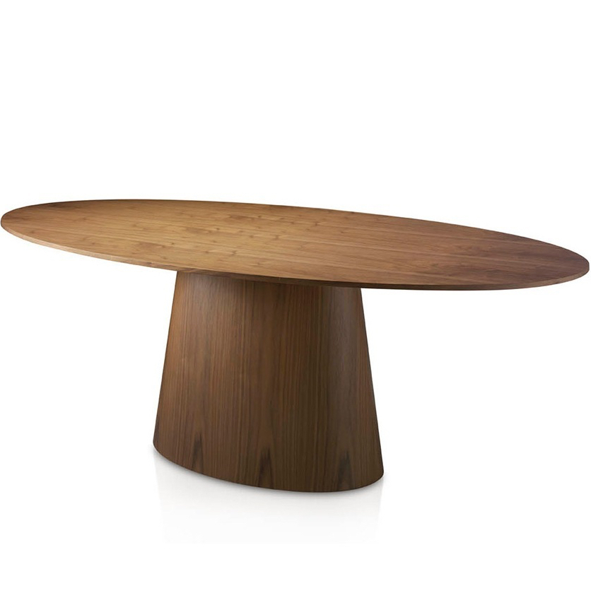 Стол Atractivo от фабрики Angel Cerda — прекрасная Скандинавия в каждой гостиной. Данная модель моментально очарует тех, кто предпочитает мебель из натуральных материалов. Здесь дизайнеры удачно сумели соединить современный европейский стиль и главную особенность скандинавского дизайна — только дерево и больше ничего. Конструкция данной модели одновременно проста и оригинальна. Она состоит из двух деталей — овальной столешницы и широкой конусообразной ножки. Форма напоминает большой гриб, что еще больше приближает эту модель к эко-стилю. Изделие полностью выполнено из МДФ облицованного ореховым шпоном. Цвет и рисунок, созданные природой, подойдут к любому современному интерьеру, где преобладает теплая или нейтральная цветовая гамма. Ввиду своей оригинальной формы, стол станет настоящим украшением гостиной, расположившись в самом центре помещения. Его габариты позволят разместить всех гостей без стеснения в свободном пространстве. Размеры — 220×110×76 (длина, ширина, высота). Вес стола — 88 кг. Доставка осуществляется в разобранном виде (ножка отдельно). Инструкция по сборке и необходимый крепеж идут в комплекте.