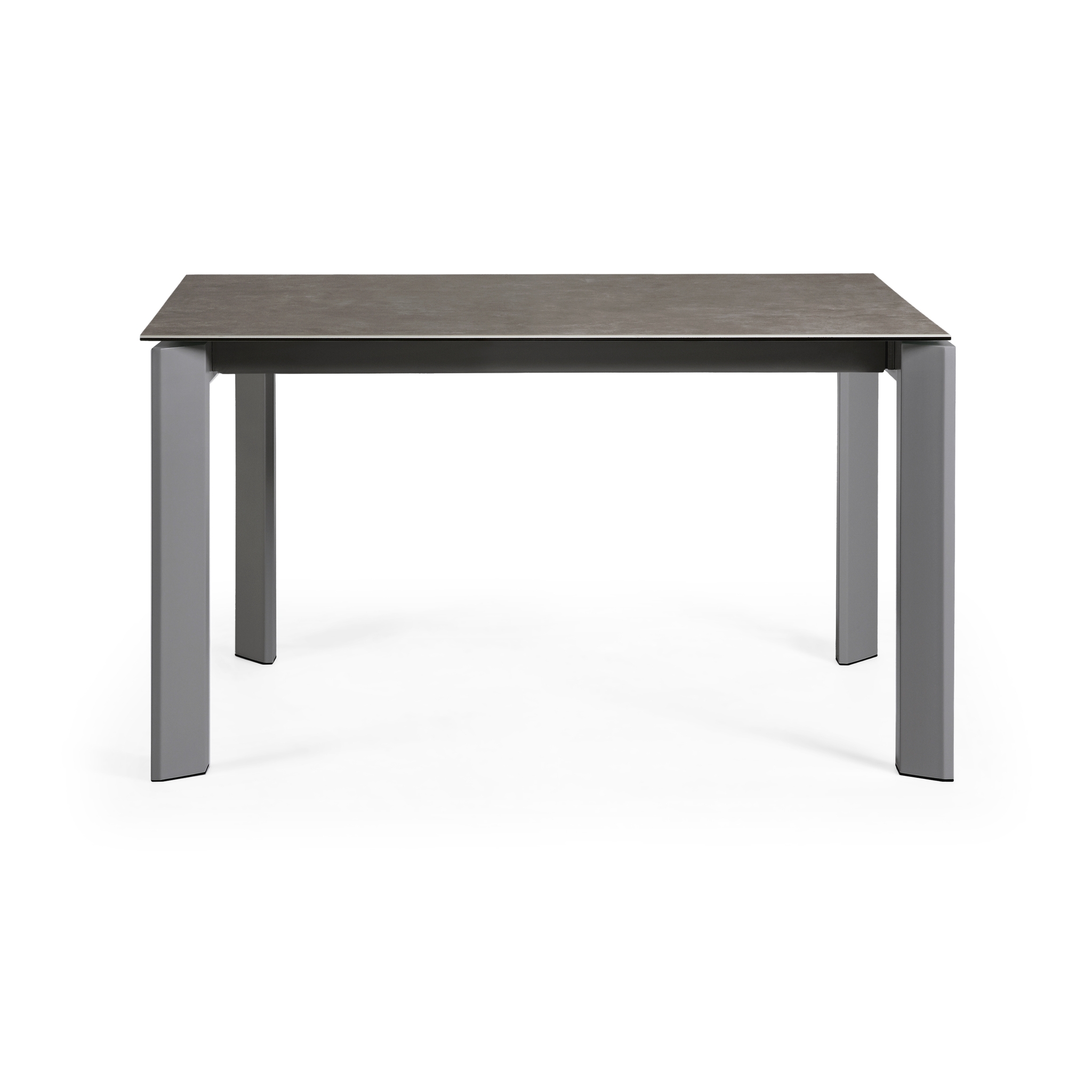 Стол Atta керамический от фабрики La Forma – безупречно спрятанная сложная конструкция в простом минимализме. Стол Atta – это победа инженерной мысли. Так мастерски спрятать выдвижной механизм и замаскировать его под тонкой столешницей смогут только профессионалы. Керамика – точно подобранный материал, который делает изделие эффектным, даже несмотря на принадлежность к минимализму. Стол прямоугольной формы. Столешница толщиной 1 см сделана из ударопрочной керамики графитового или коричневого цвета (для базовых моделей). Данный материал практичный, стойко переносит воздействие высоких температур, легко очищается от загрязнений. Выдвижной механизм находится справа. Чтобы раздвинуть стол, необходимо потянуть за ножки и достать сложенную пополам дополнительную панель (она из МДФ). Раздвижной механизм сделан из нержавеющей стали. Опора выполнена из металла, покрыта серой краской. Благодаря поддержке столешницы по всему периметру, обеспечивается стойкость к высоким весовым нагрузкам, правильное распределение веса. Размеры стола: длина – 120-180 см, 140-200 см или 160-220 см, ширина – 90 см, высота – 76 см.