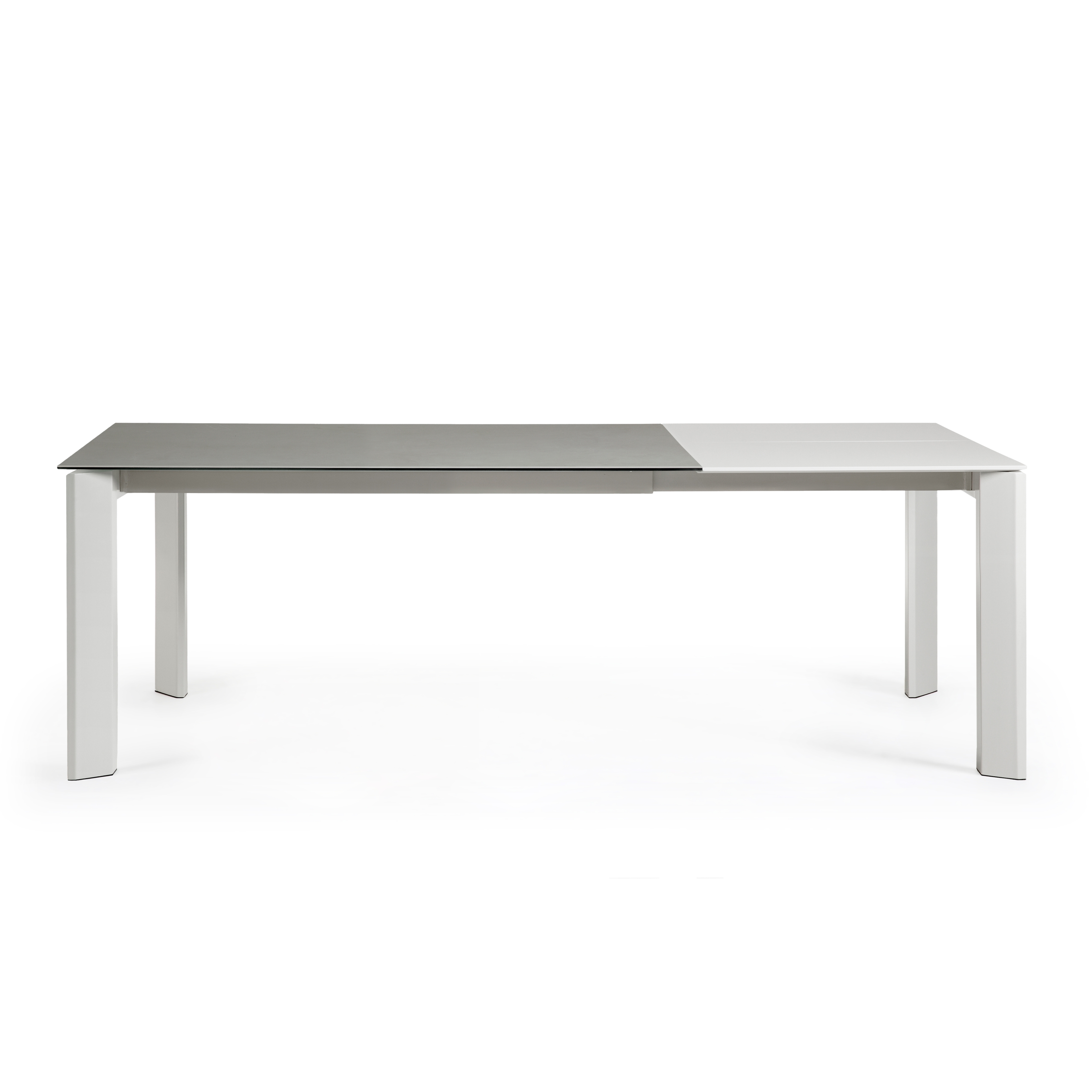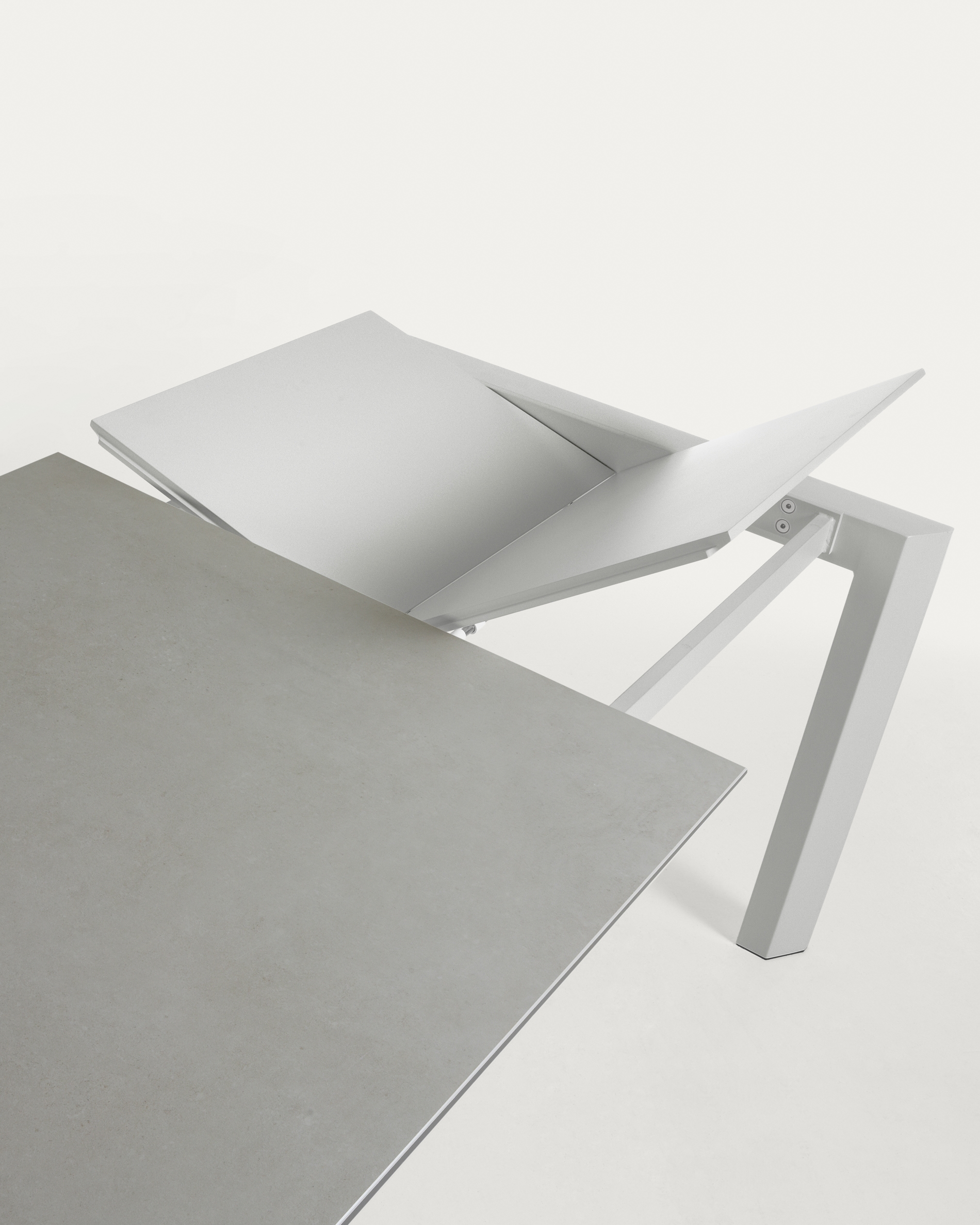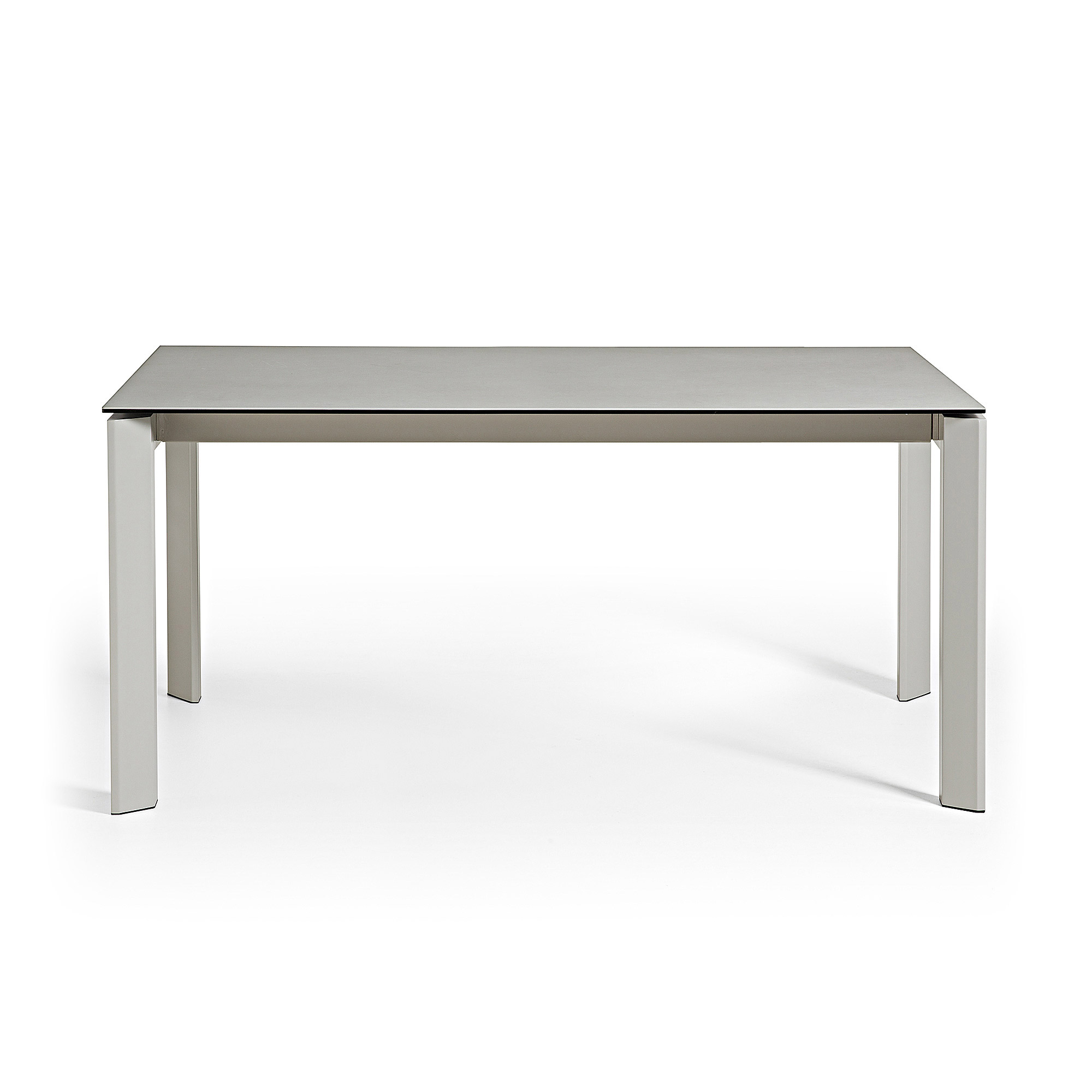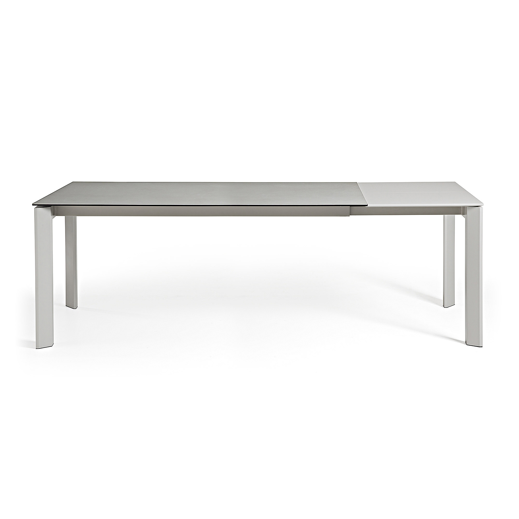 Стол Atta серый керамический от фабрики La Forma – безупречно спрятанная сложная конструкция в простом минимализме. Стол Atta – это победа инженерной мысли. Так мастерски спрятать выдвижной механизм и замаскировать его под тонкой столешницей смогут только профессионалы. Керамика – точно подобранный материал, который делает изделие эффектным, даже несмотря на принадлежность к минимализму. Стол прямоугольной формы. Столешница толщиной 1 см сделана из ударопрочной керамики графитового или коричневого цвета (для базовых моделей). Данный материал практичный, стойко переносит воздействие высоких температур, легко очищается от загрязнений. Выдвижной механизм находится справа. Чтобы раздвинуть стол, необходимо потянуть за ножки и достать сложенную пополам дополнительную панель (она из МДФ). Раздвижной механизм сделан из нержавеющей стали. Опора выполнена из металла, покрыта серой краской. Благодаря поддержке столешницы по всему периметру, обеспечивается стойкость к высоким весовым нагрузкам, правильное распределение веса. Размеры стола: длина – 120-180 см, 140-200 см или 160-220 см, ширина – 90 см, высота – 76 см.