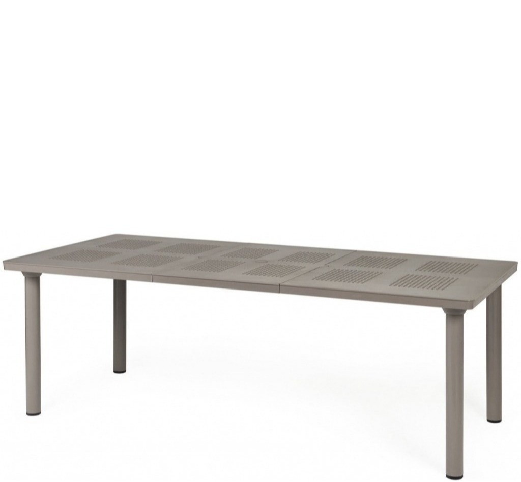 Раздвижной стол Libeccio с дизайном, который напоминает традиционную железную мебель, станет превосходным решением для обустройства разнообразных открытых пространств и помещений сферы Contract. Столешница украшена интересным узором из маленьких отверстий, которые последовательно повторяются, а каркас изготовлен из легкого и прочного трубчатого алюминия с круглым сечением.