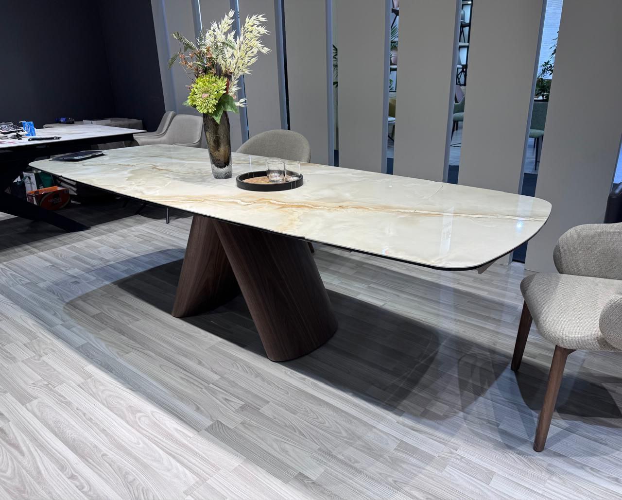 Основание: металл, покрытый натуральным шпоном ореха.