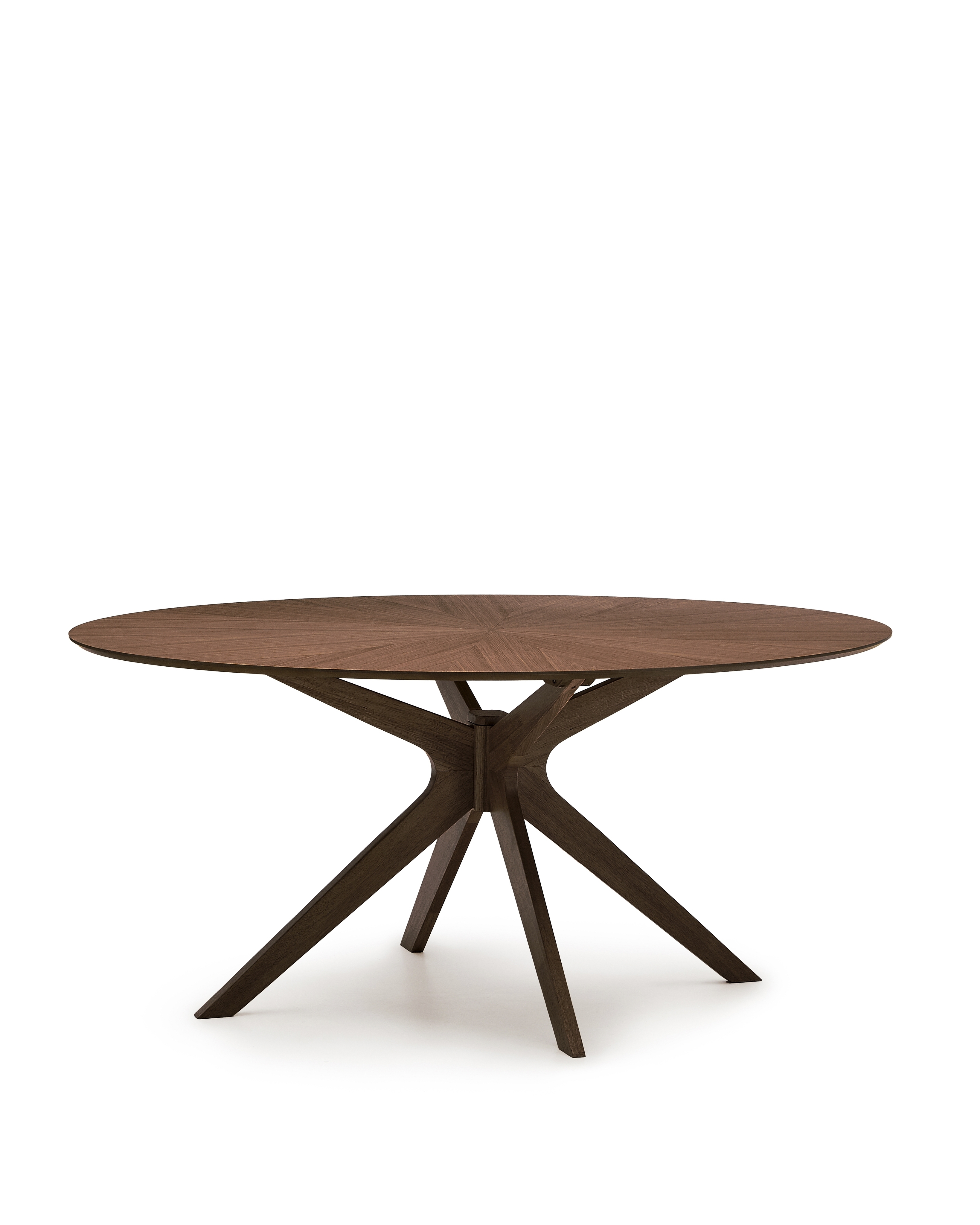 Каждый стол Naanim уникален, изготовлен из натурального орехового шпона и ножек из массива каучукового дерева. Кроме того, волокна сходятся в форме звезды с эксклюзивными оттенками, что придает ему отличительный характер.