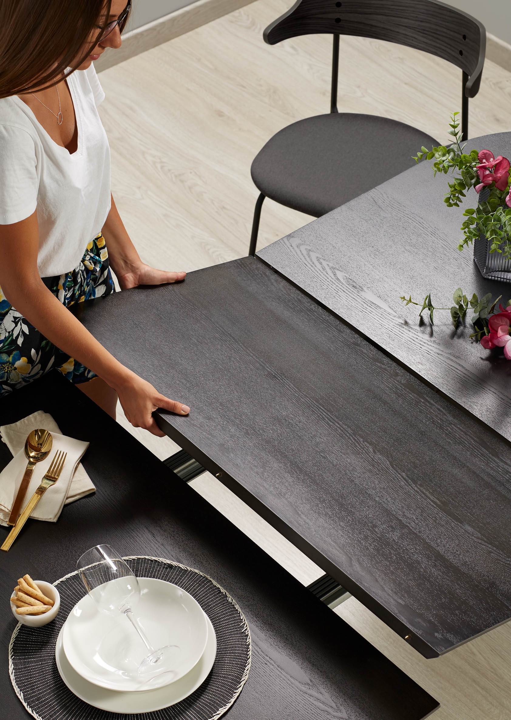 Стол раздвижной Norfort от фабрики La Forma – потрясающий фьюжн для квартиры «со вкусом». Стол выглядит очаровательно и стильно. Его изящная конструкция визуально облегчает внешний вид. Поэтому он кажется совершенно негабаритным, даже если раздвинуть столешницу. Да, дизайнерам удалось соединить несовместимое – утонченность и большую площадь. Стол отлично подойдет для гостиной в городской квартире, оформленной в современном стиле. Стол овальной формы. Столешница сделана из МДФ натурального дерева. Для защиты поверхности во время эксплуатации, на нее нанесено специальное покрытие. Цвет столешницы у базовой модели – венге. Опора имеет сварную конструкцию, сделана из металла, покрытого черной эпоксидной краской. Она состоит из четырех двойных ножек, рамы, поддерживающей столешницу по всему периметру, и поперечных перекладин, обеспечивающих прочность при нагрузках. Чтобы удлинить стол, нужно раздвинуть края столешницы и извлечь дополнительные панели. Далее их следует уложить на металлические направляющие. В зависимости от выбранной модели, максимальная длина стола составляет 320 см. Размеры: длина – 140-220 или 170-320 см, ширина – 90 или 100 см, высота – 75 см. Для самостоятельной сборки в комплектацию включены инструкция и крепеж. В коллекции Norfort также представлены круглый стол, тумба под ТВ, буфет.
