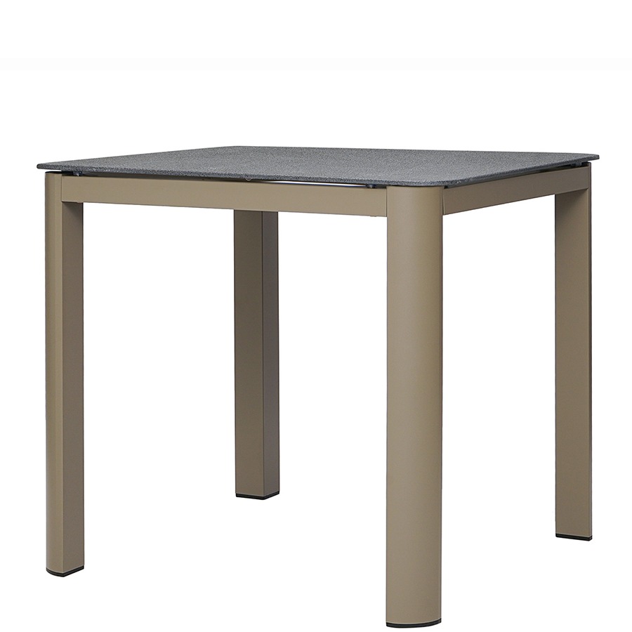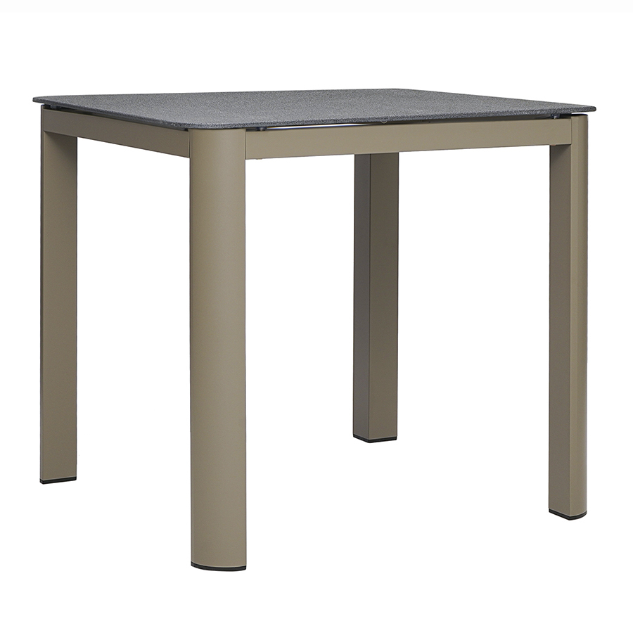Материал: алюминий, закаленное кварцевое стекло. Размеры: 80х80х75 см. Расстояние между ножками: 76 см. Цвет: серо-бежевый.