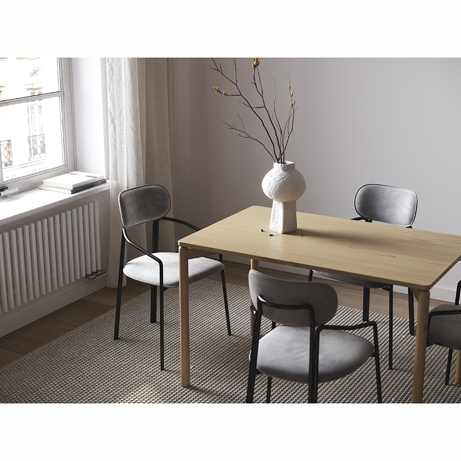 Cтол обеденный изготовлен из массива ясеня – твердой породы древесины, плотность и прочность которой не уступает характеристикам дуба. Благодаря прекрасным эксплуатационным свойствам материала готовое изделие устойчиво к износу, деформации, ударам, имеет высокие показатели практичности и экологической безопасности. Покрытая натуральным шпоном столешница не боится царапин и долго сохраняет привлекательный вид. Мебель из массива дерева с лаконичным дизайном всегда актуальна, отлично сочетается с любыми материалами и стилевыми решениями, что является ее неоспоримым преимуществом.
