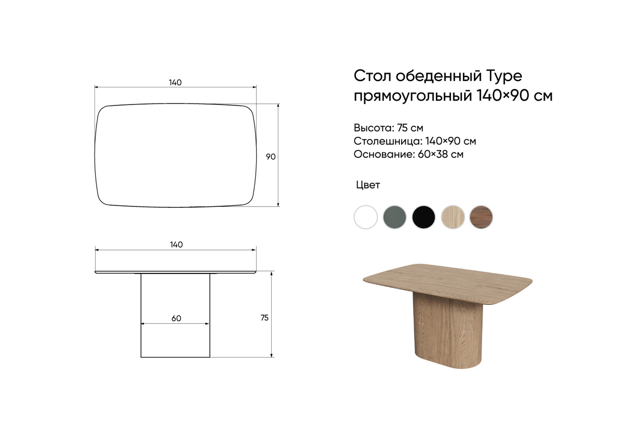 Стол обеденный Type прямоугольный 140*90 см (натуральный дуб, черный)