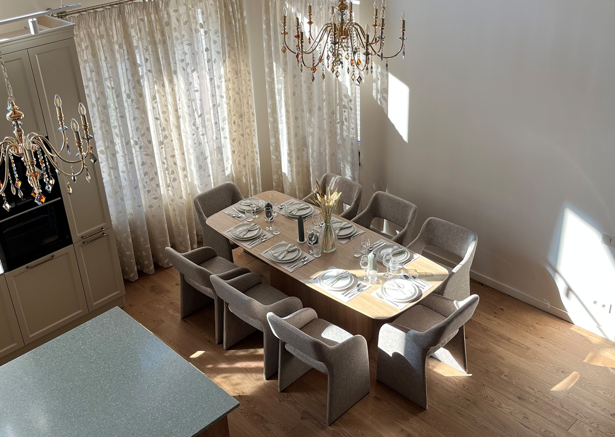 Высота: 75 см Столешница: 220*95 см Материал: массив березы, шпон дуба, мдф Покрытие: RAL 9003