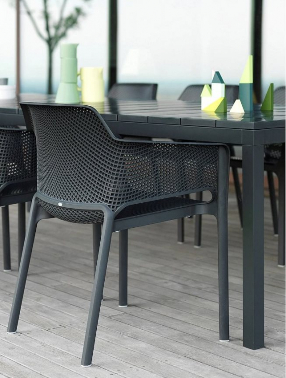 Дизайн: Raffaello Galiotto. Пластиковый раздвижной столRio 140 Extensibileс архитектурными деталями и яркой индивидуальностью разработан для создания гибких и современных пространств. Решетчатая столешница DurelTop с УФ-обработкой и окрашенная алюминиевая рама обеспечивают долговечность и надежность модели. Благодаря вставкам длина стола может изменяться от 1400 до 2100 мм, таким образом за столом без проблем может поместиться до 8 человек.Надежнаяи функциональнаямодель станет идеальнымрешениемдля столовой на открытом воздухе, сада, террасыили площадки возле бассейна. Особенности: Ножки стола выполнены из окрашенного алюминия. Столешницы DurelTopобладают антивандальными свойствами, выполнены из прочного многослойного пластика, на поверхности не остаются следы от сигаретных окурков.Это равномерноокрашенный нетоксичными пигментами полипропиленвысокого качества с добавлением анти-УФ-агентов, который устойчив к воде и воздействию солнца, невыгорает и не меняет цвет под их воздействием. Материал легкий, долговечный, нетоксичный,антистатический и атмосферостойкий - настоящее итальянское качество! Регулируемые накладки на ножках. Желательно использование столав затененных местах. Продукт протестирован в соответствии со стандартом. Открыть технические характеристики. Открыть инструкцию по эксплуатации. Рекомендации производителя по уходу за мебелью: Полипропилен на 100% пригоден для вторичной переработки и легко дезинфицируется. Для эффективной очистки: Промойте изделие водой, чтобы удалить всю грязь и пыль с поверхности. Распылите на поверхность средство Magic Cleaner Nardiили неагрессивное универсальное моющее средство. Дайте моющему средству подействовать на несколько минут. Затем протрите влажной тканью или губкой. Для удаления стойких загрязнений и следов с поверхности производитель рекомендуетиспользовать средствоMagic Sponge Nardi имеламиновую губку.Промойте поверхность большим количеством воды и высушите насухо. Используйте зубную щетку, чтобы удалить грязь в труднодоступных местах.