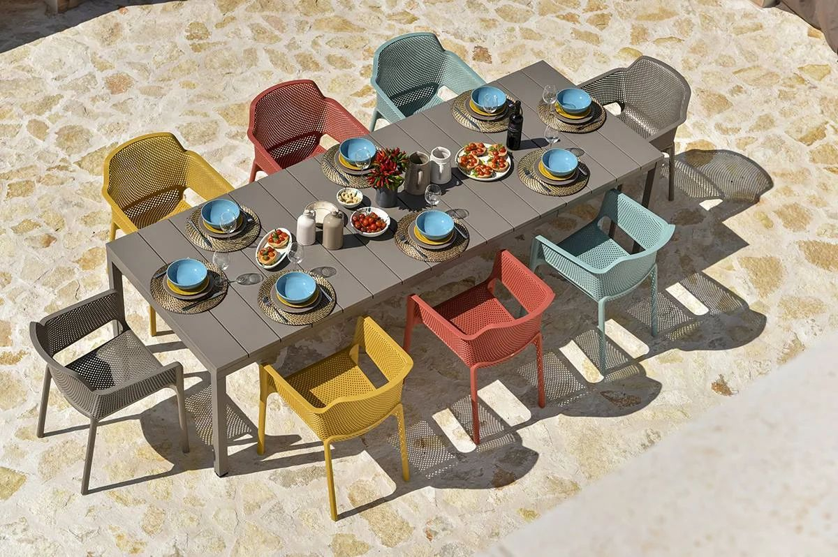 Пластиковый раздвижной стол Rio 210 Extensibile с архитектурными деталями и яркой индивидуальностью разработан для создания гибких и современных пространств. Решетчатая столешница DurelTop с УФ-обработкой и окрашенная алюминиевая рама обеспечивают долговечность и надежность модели. Благодаря вставкам длина стола может изменяться от 2100 до 2800 мм. Надежная и функциональная модель станет идеальным решением для столовой на открытом воздухе, сада, террасы или площадки возле бассейна.