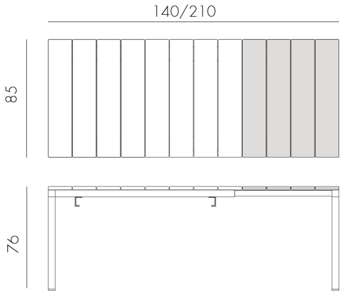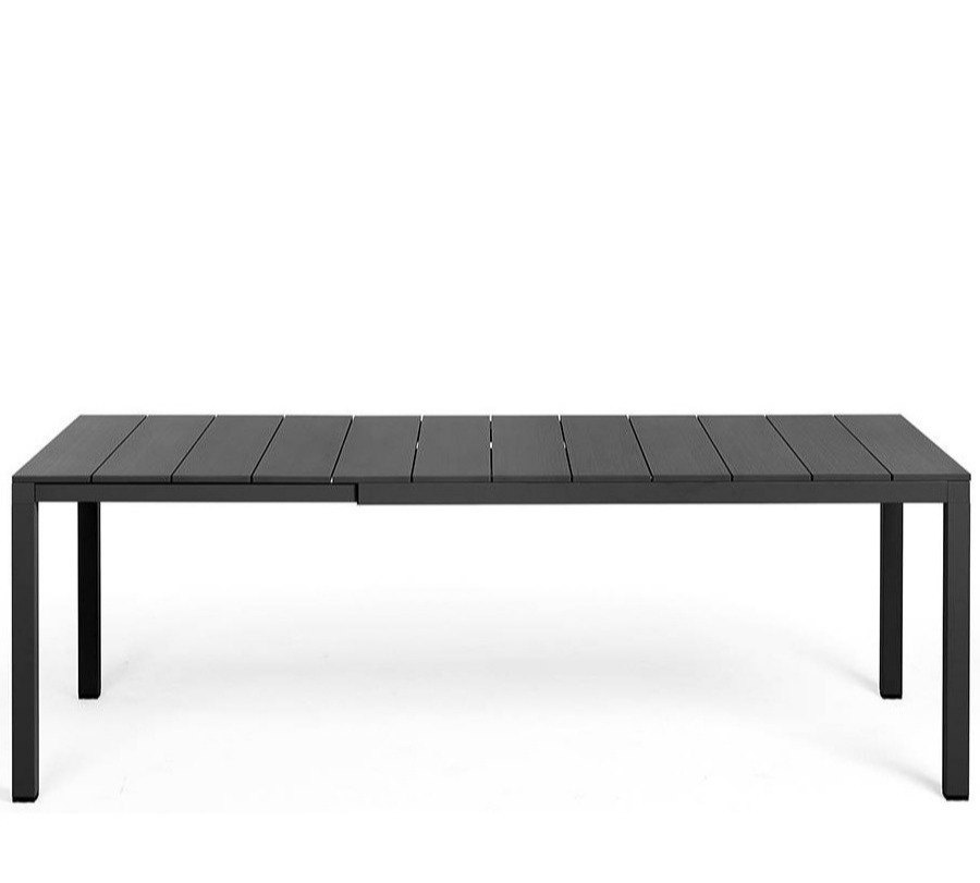 - Модель имеет систему выдвижения, которая позволяет конструкции скользить, всегда удерживая ножки на концах стола. Таким образом можно избежать любых неприятных неудобств из-за мешающих опор. Стол был разработан с идеальной системой быстрой фиксации его удлиняемой части: после расширения RIO представляет собой длинный фиксированный стол без каких-либо недостатков.