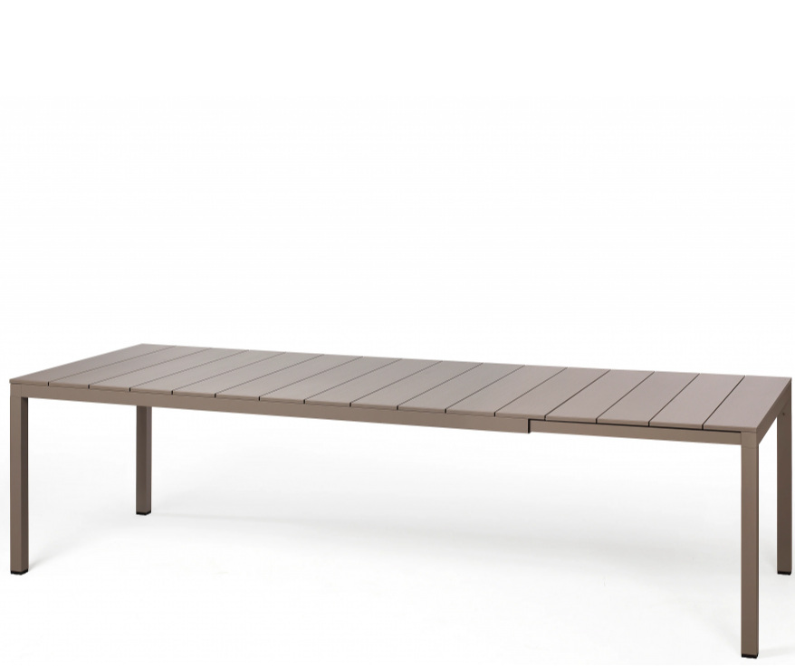 - Модель имеет систему выдвижения, которая позволяет конструкции скользить, всегда удерживая ножки на концах стола. Таким образом можно избежать любых неприятных неудобств из-за мешающих опор. Стол был разработан с идеальной системой быстрой фиксации его удлиняемой части: после расширения RIO представляет собой длинный фиксированный стол без каких-либо недостатков.