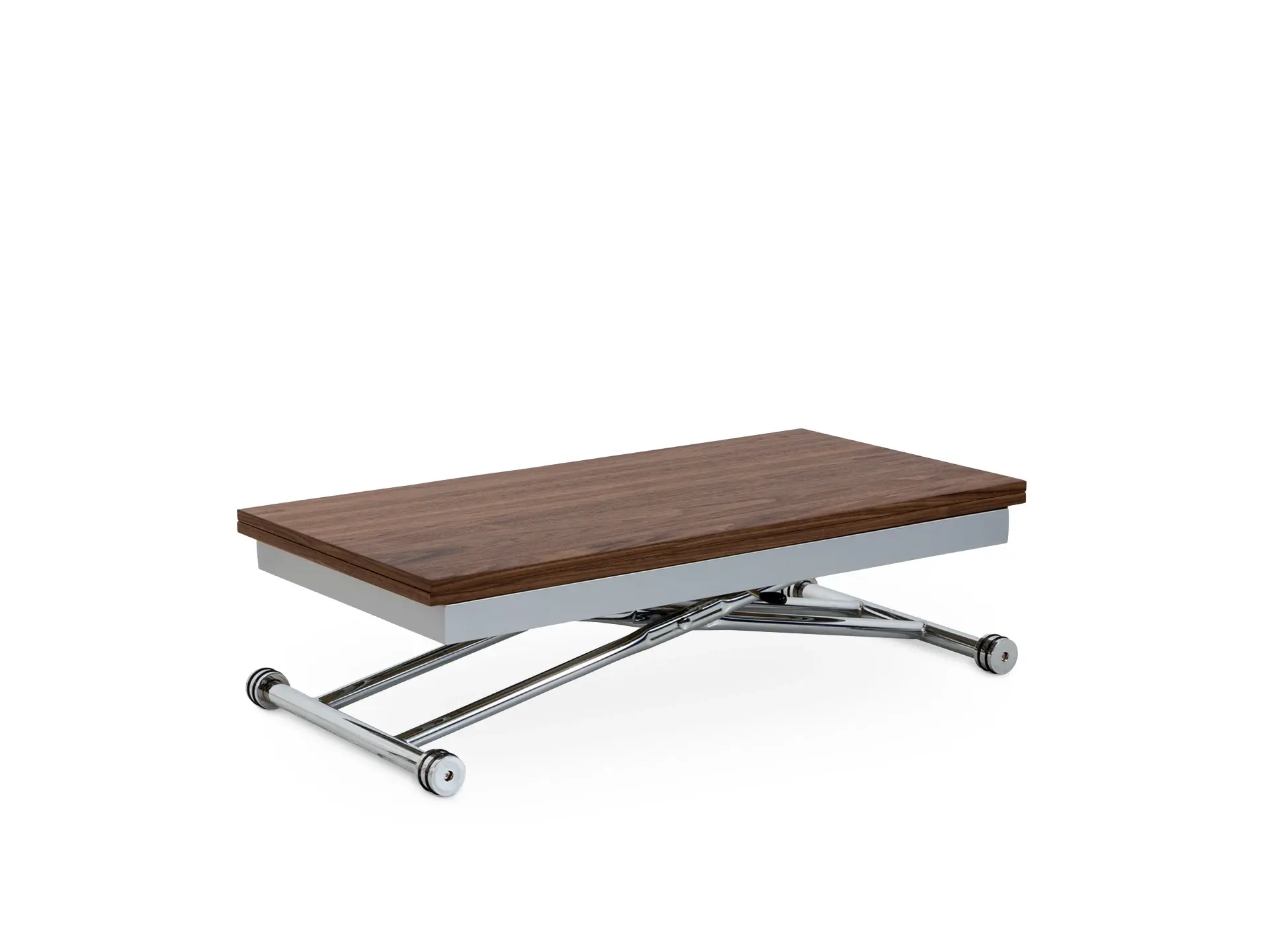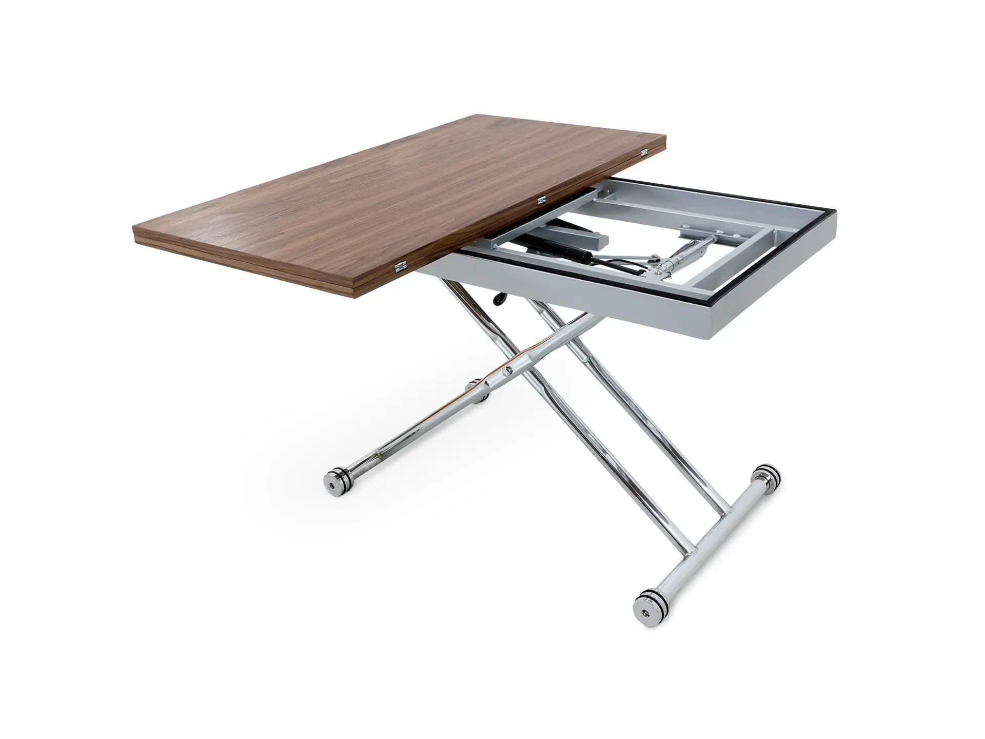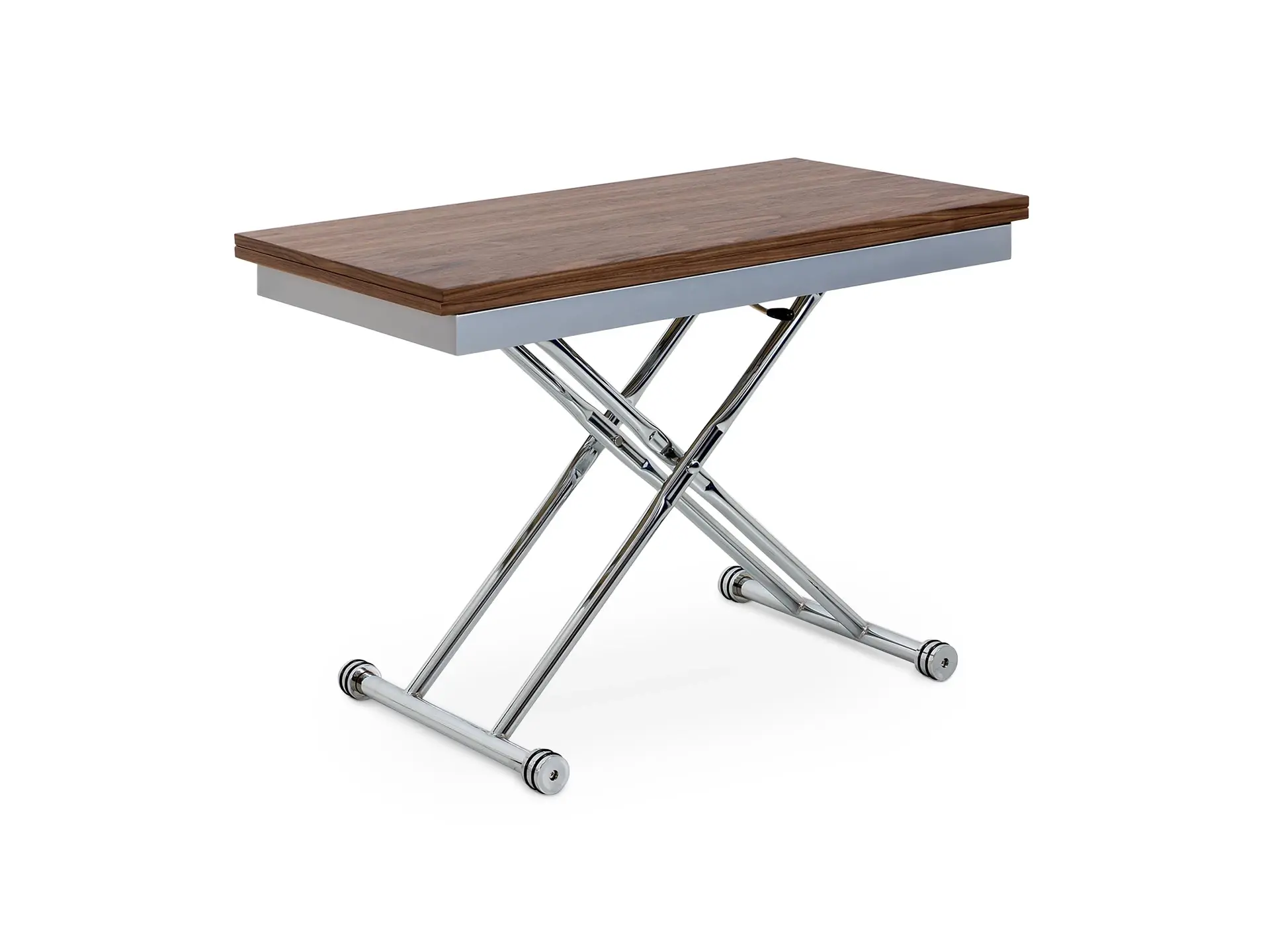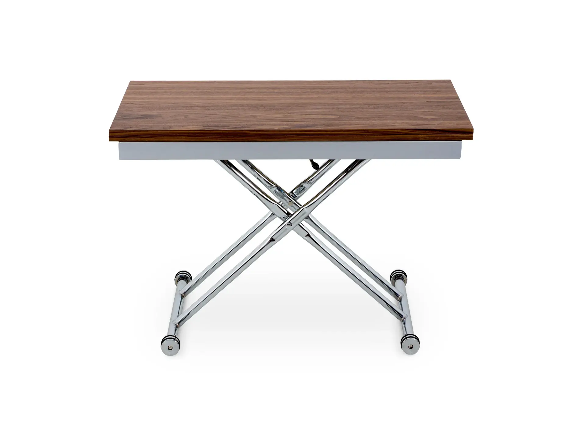 Стол многофункциональный, раскладной, с регулятором высоты. Каркас: металл хромированный . Столешница: МДФ, покрыта шпоном натурального дерева. Толщина столешницы 1,8 см , длина столешницы 114 см, максимальная длина 120 см, ширина в сложенном виде 60 см, ширина в разложенном виде 114 см. Высота 30/79,5см - со сложенной столешницей; 76,5 см - с разложенной столешницей. Наличие подпятников, предохраняющих от царапания пола.