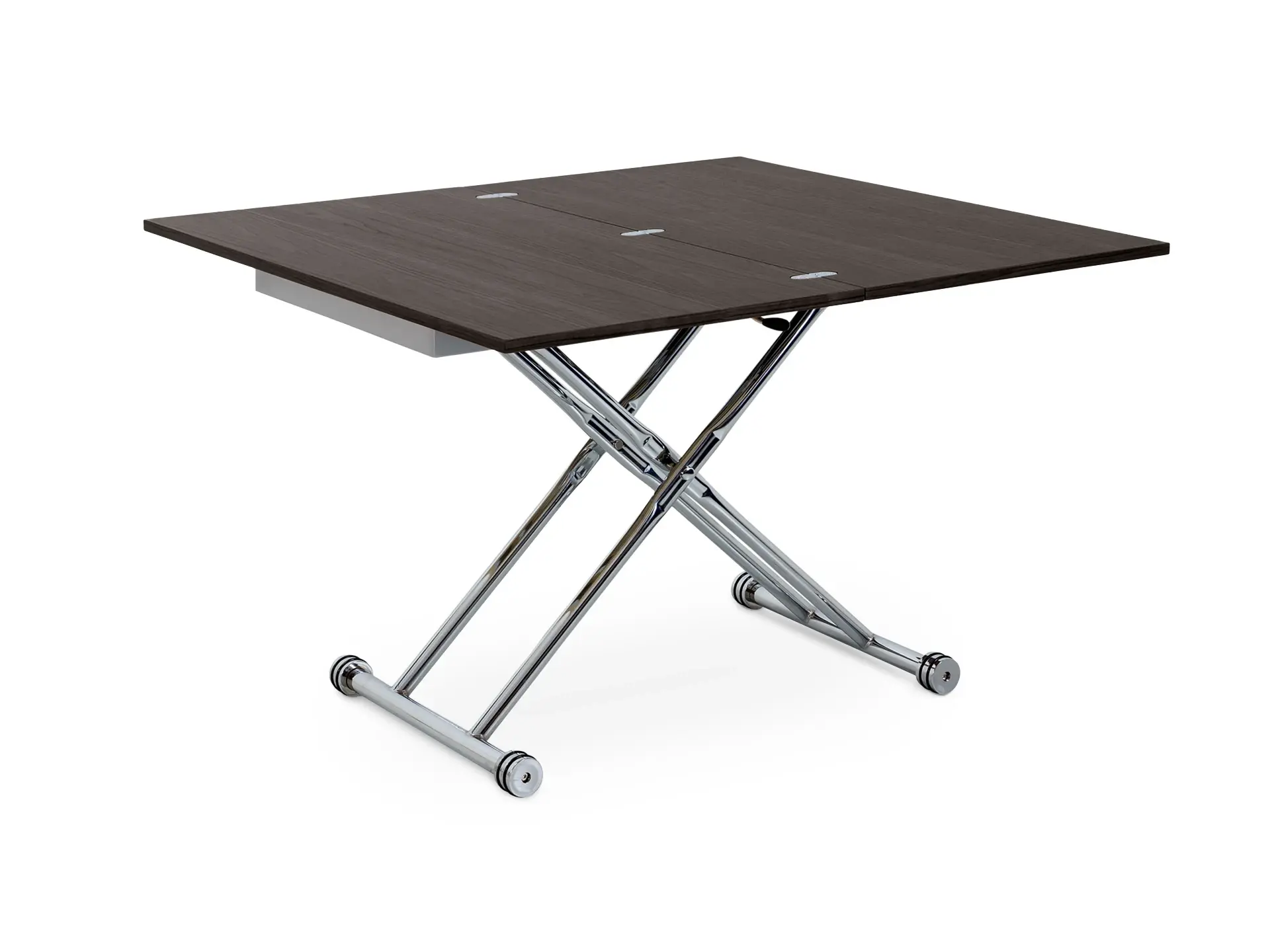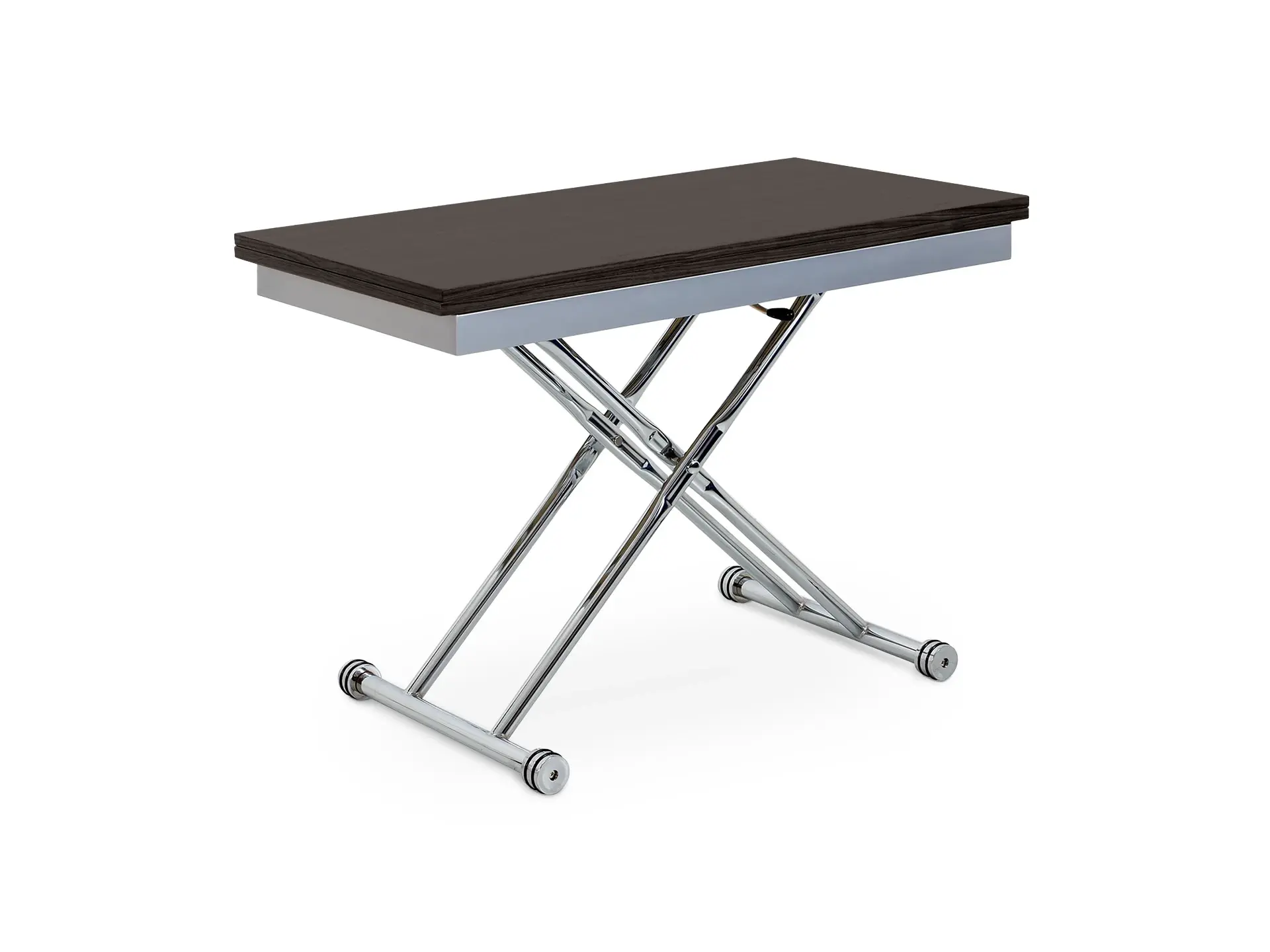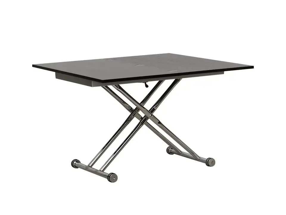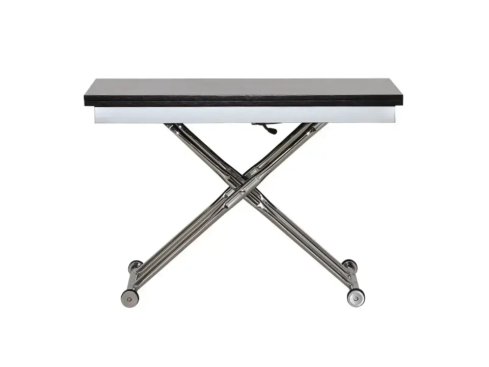 Стол многофункциональный, раскладной, с регулятором высоты. Каркас: металл хромированный . Столешница: МДФ, покрыта шпоном натурального дерева. Толщина столешницы 1,8 см , длина столешницы 114 см, максимальная длина 120 см, ширина в сложенном виде 60 см, ширина в разложенном виде 114 см. Высота 30/79,5см - со сложенной столешницей; 76,5 см - с разложенной столешницей. Наличие подпятников, предохраняющих от царапания пола.