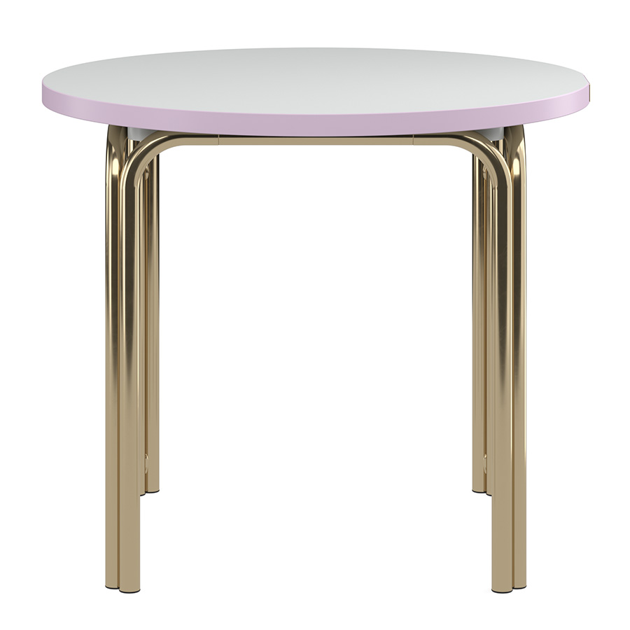 Материалы: сталь, ламинированная МДФ. Диаметр: 50 см. Высота: 40 см. Цвет: латунь/серый/розовый.