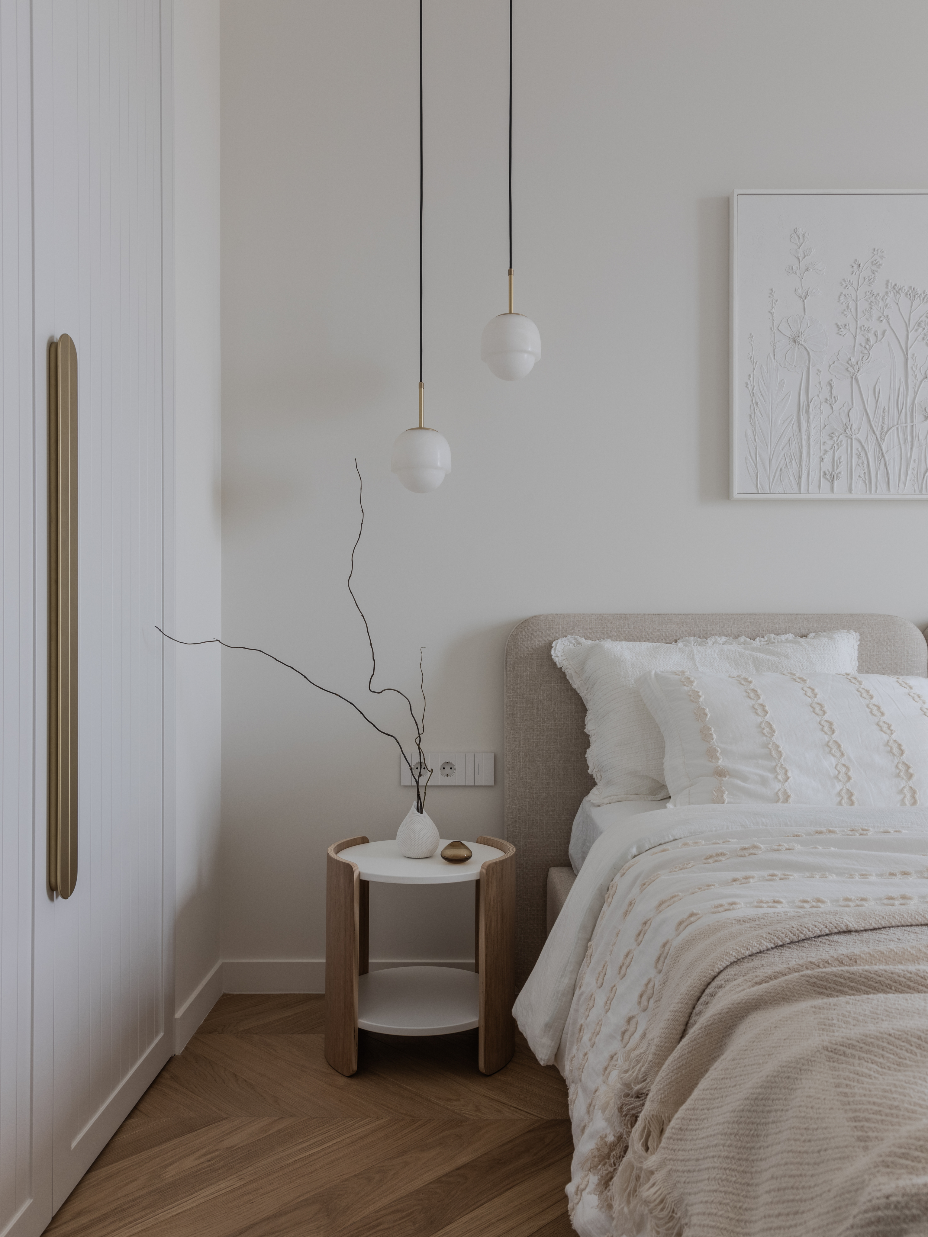 Столик Lagom D 43 см высота 45 см (белый, натуральный дуб)