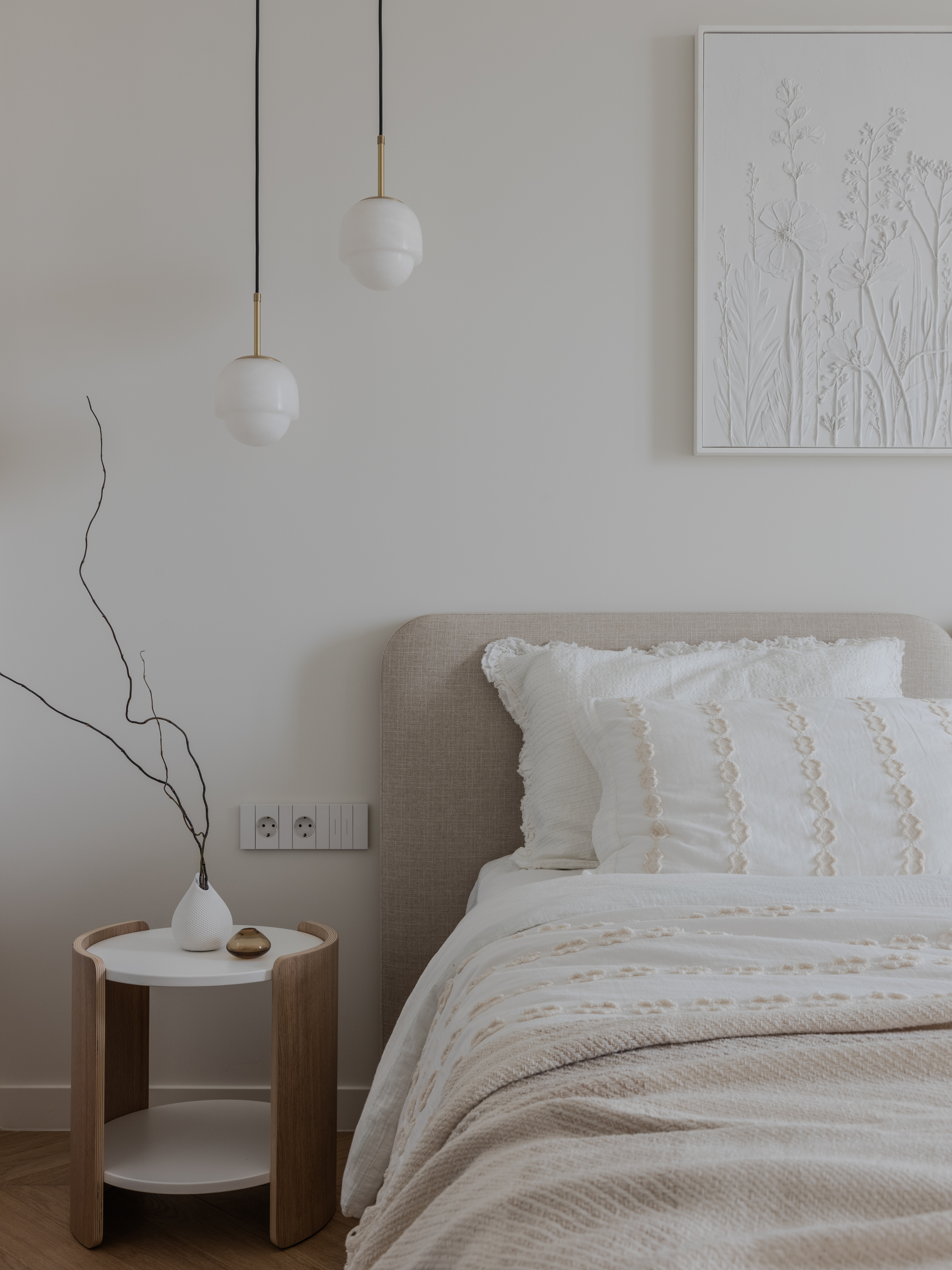 Оригинальные столики из коллекции Lagom станут ярким акцентом любой комнаты Можно организовать уютную зону в гостиной, использовать столики в качестве прикроватных или дополнить интерьер детской комнаты При производстве используется шпон дуба, покрытие белый полупрозрачный лак, столешница под эмалью Высота: 45 см Диаметр столешницы: 39.4 см Диаметр основания: 43 см Основание: береза, шпон дуба, лак Столешница: МДФ 12 мм, эмаль RAL 9003
