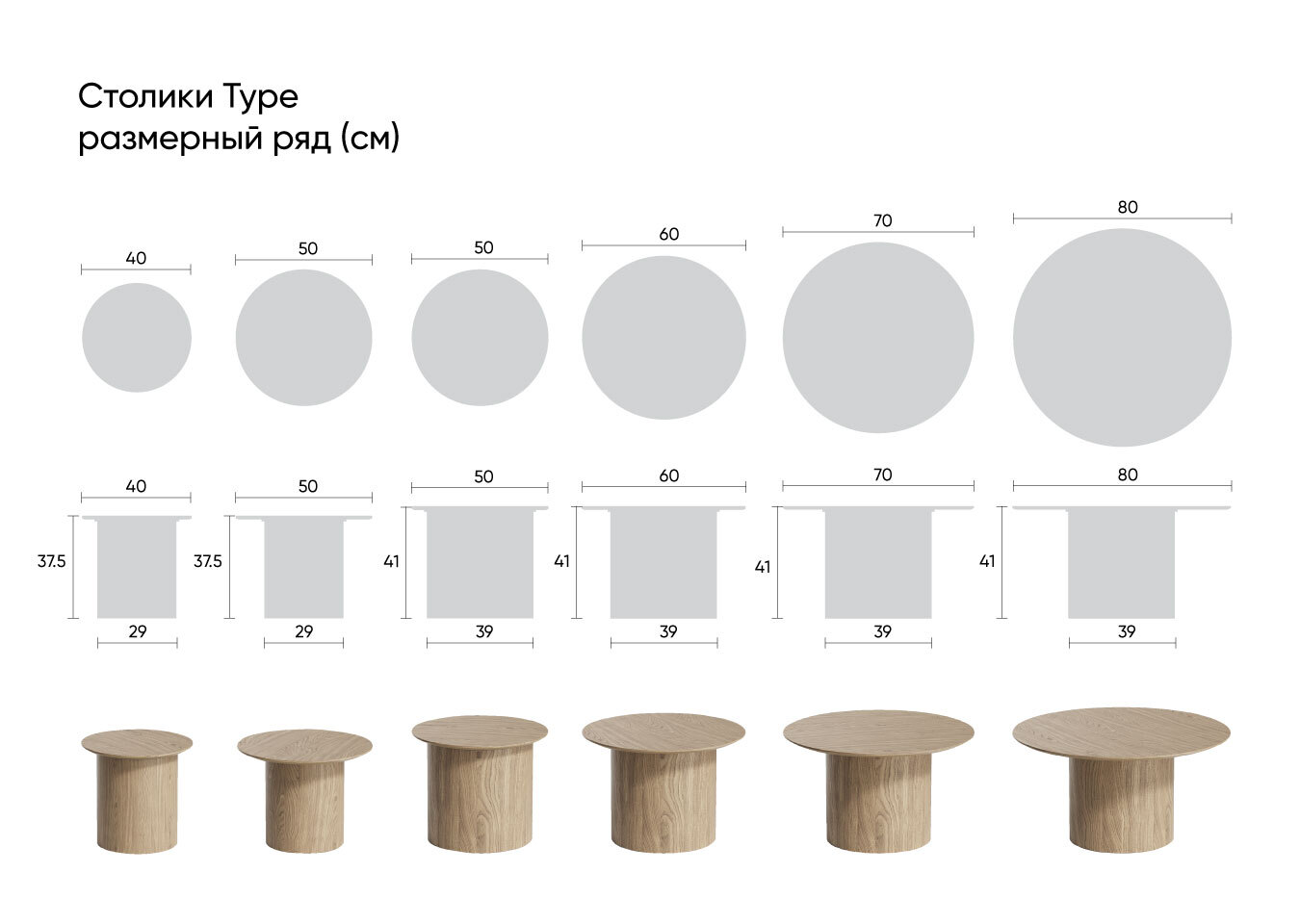 Оригинальные столики из коллекции Type станут ярким акцентом любой комнаты Благодаря широкому размерному ряду можно организовать уютную зону в гостиной, использовать столики в качестве прикроватных или дополнить интерьер детской комнаты При производстве используется шпон натурального дуба, покрытие белый полупрозрачный лак или эмаль Высота: 41 см Диаметр столешницы: 80 см Диаметр основания: 39 см Материал: шпон дуба, береза, мдф Покрытие: эмаль RAL 9003