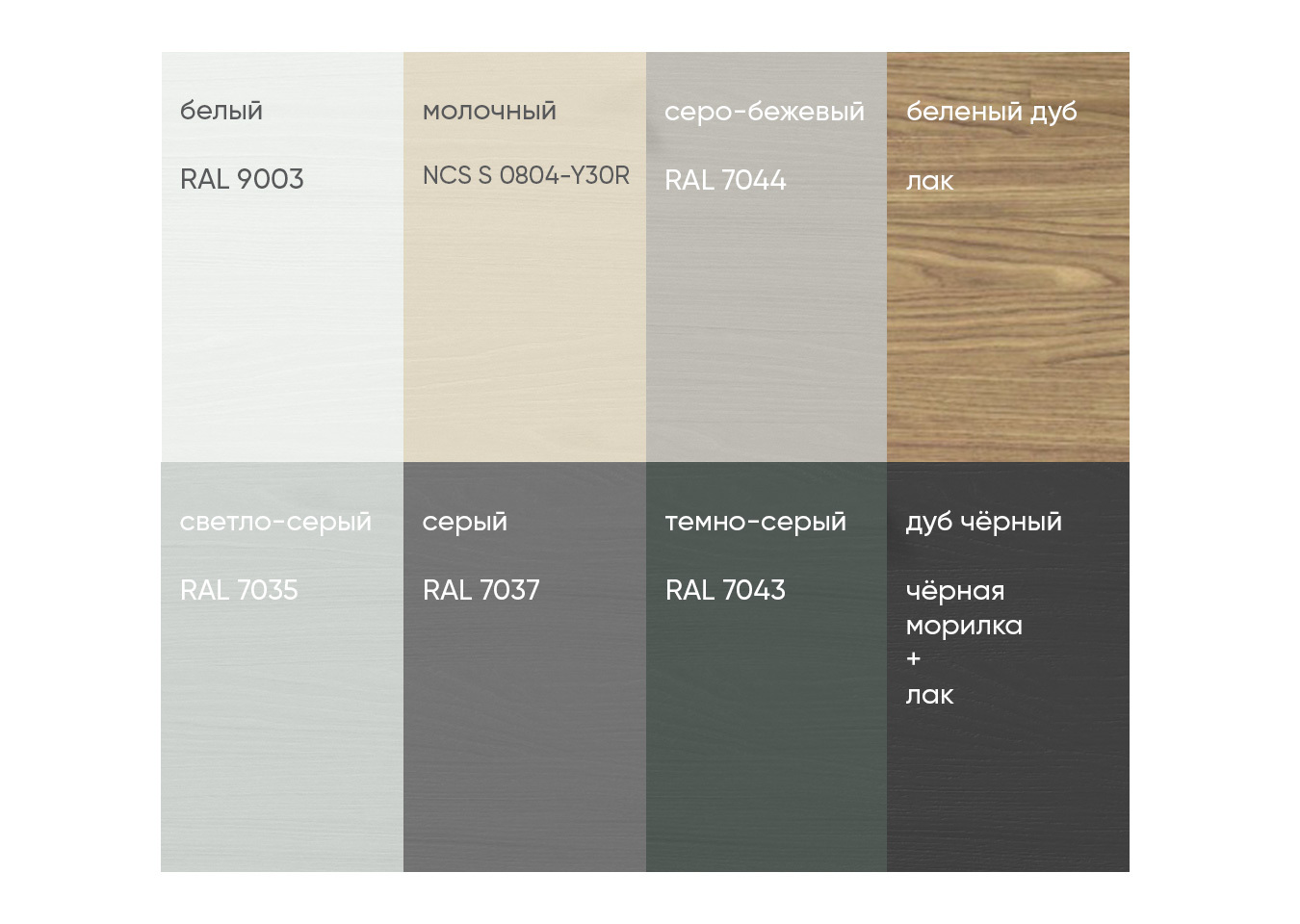 При производстве используется шпон натурального дуба, покрытие белый полупрозрачный лак или эмаль