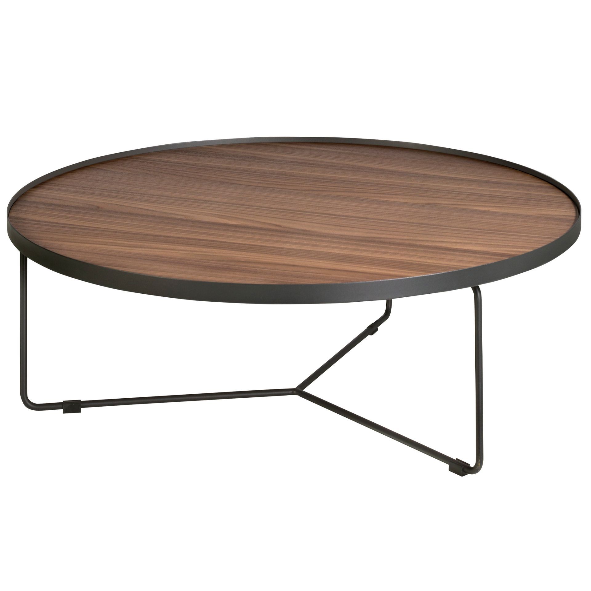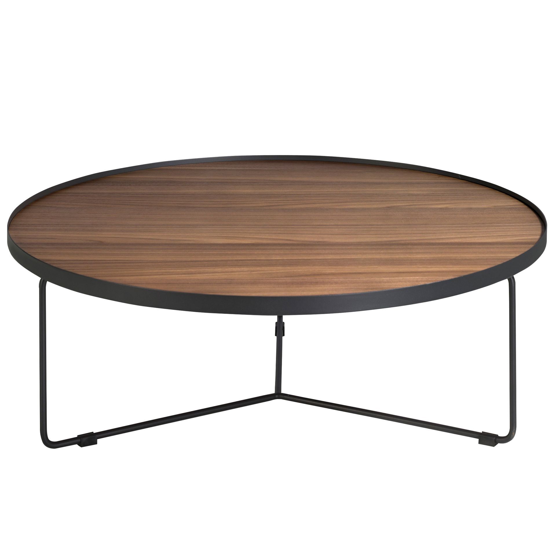 Деревянная столешница из шпона ореха имеет диаметр 100 см. Такой впечатляющий размер позволяет разместить на столе довольно много предметов, что будет безусловным преимуществом во время чаепития. Столик удачно будет смотреться в центре большой гостинной — он не затеряется и впишется в любой современный интерьер (минимализм, хай-тек, гранж, скандинавский стиль).
