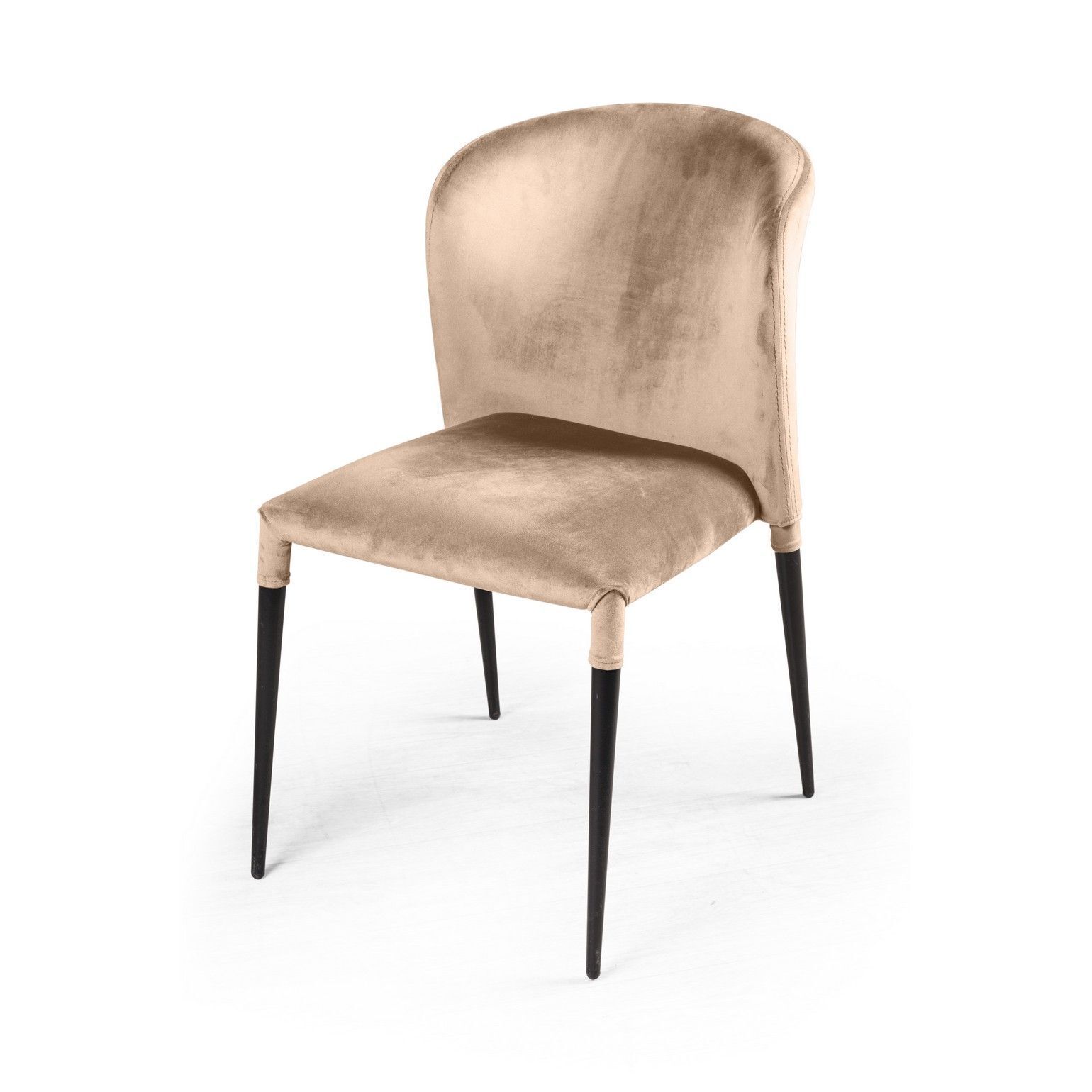 Изюминка стула Albert – невероятно тонкие металлические ножки черного матового цвета, излишне скошенные назад, как часть дизайнерской задумки. На ножках предусмотрены специальные пластиковые накладки, которые придают стулу дополнительную устойчивость и защищают пол от царапин.