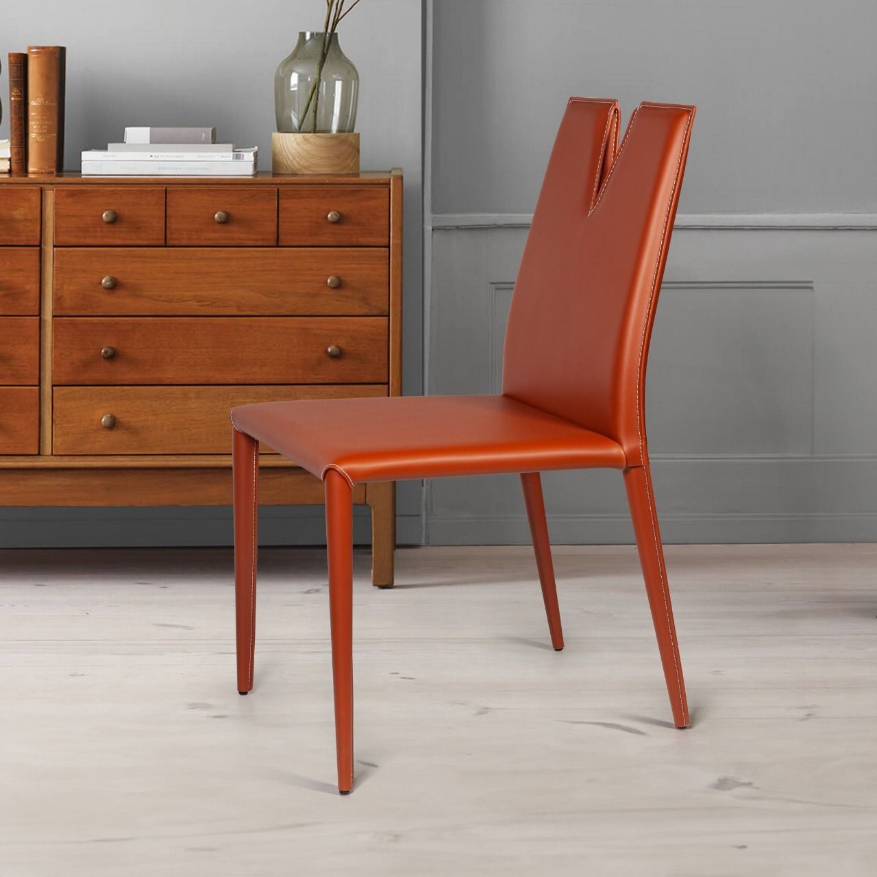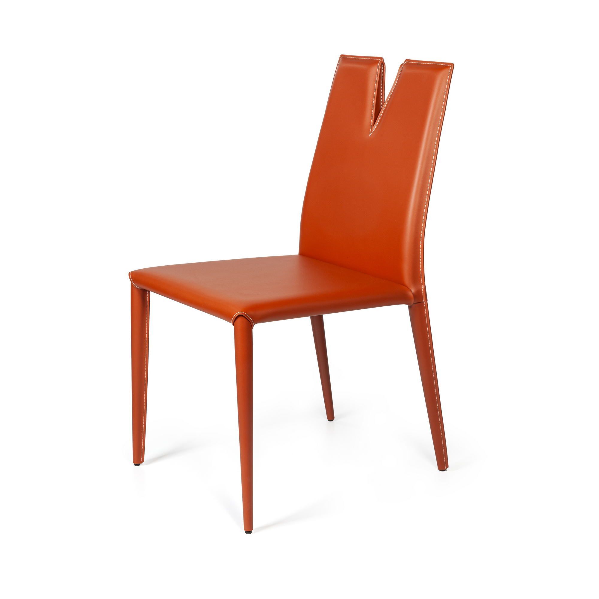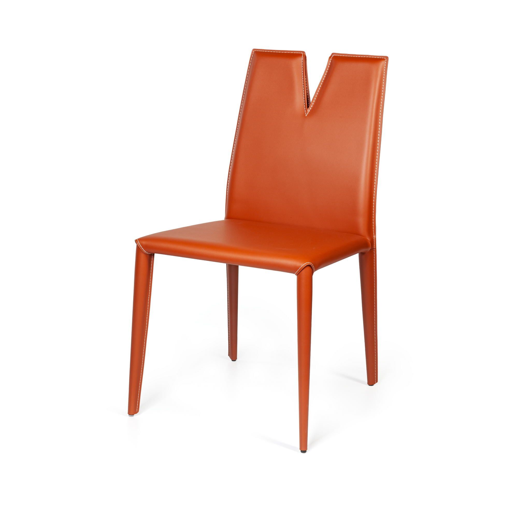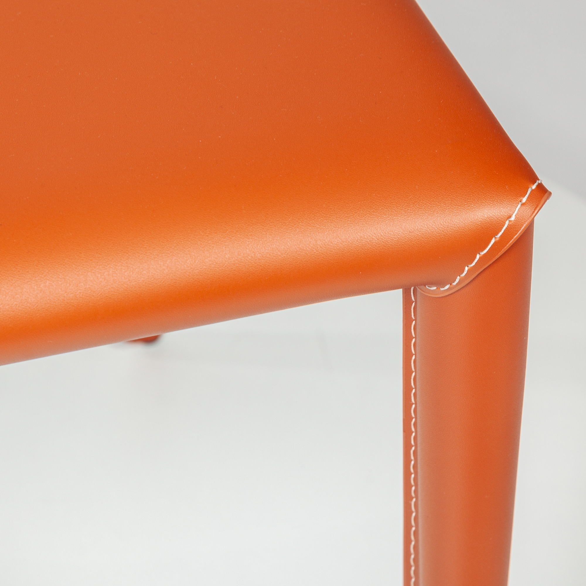 Яркий рыжий оттенок подчеркивает современный дизайн стула и создает энергичную атмосферу в помещении.