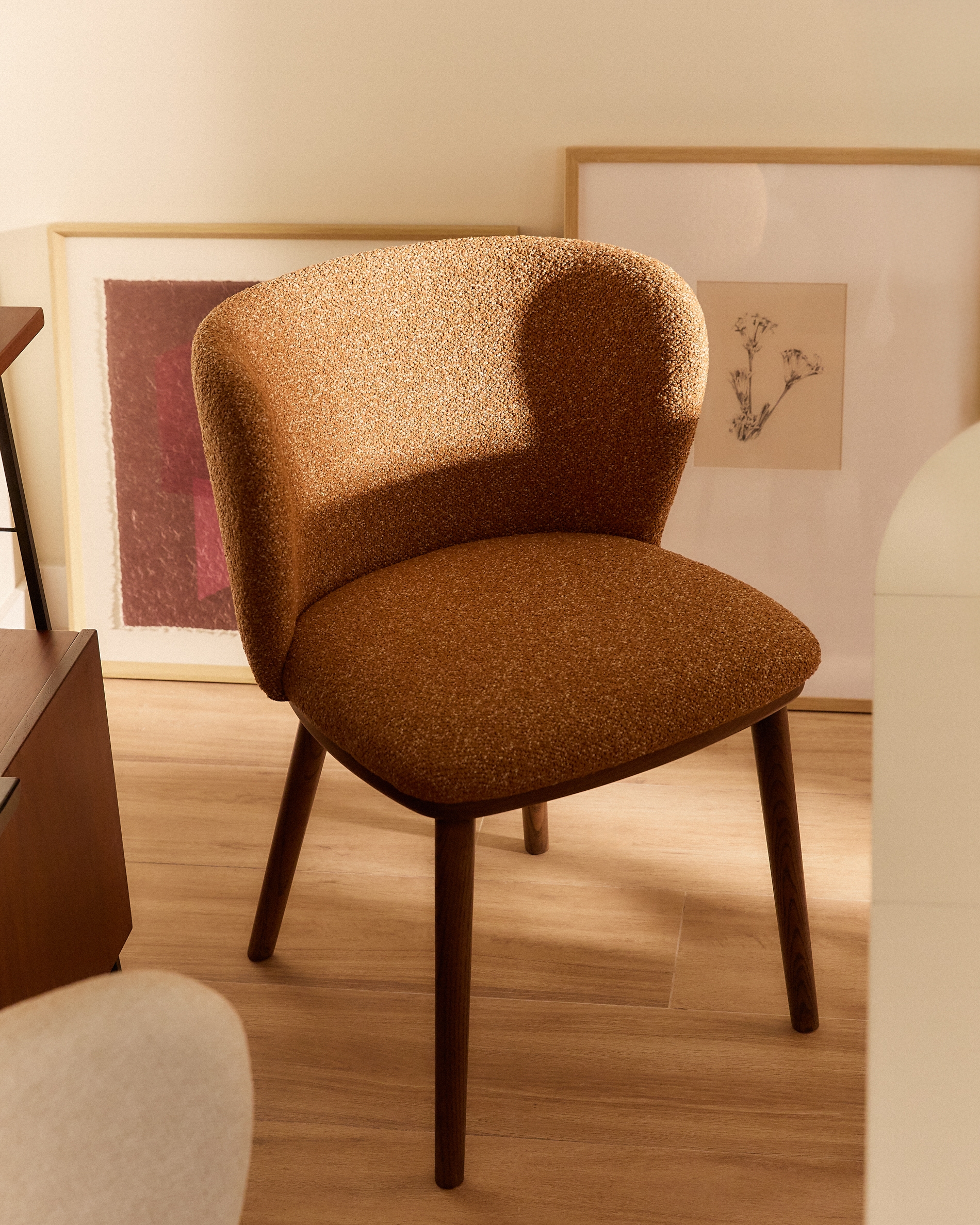 Коллекция стульев Ciselia сочетает в себе комфорт, дизайн и заботу об окружающей среде в изделиях с мягкими современными линиями. Обивка из плотного шенилла имеет бархатистую и прочную текстуру, которая окутывает сиденье уютом. Ножки из массива ясеня с отделкой цвета ореха обеспечивают устойчивость и визуальный баланс, подчёркивая элегантность и вневременной характер стула. Сиденье наполнено пенополиуретаном плотностью 28 кг/м³, что обеспечивает прочность и комфорт в течение длительного времени.