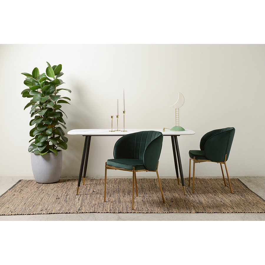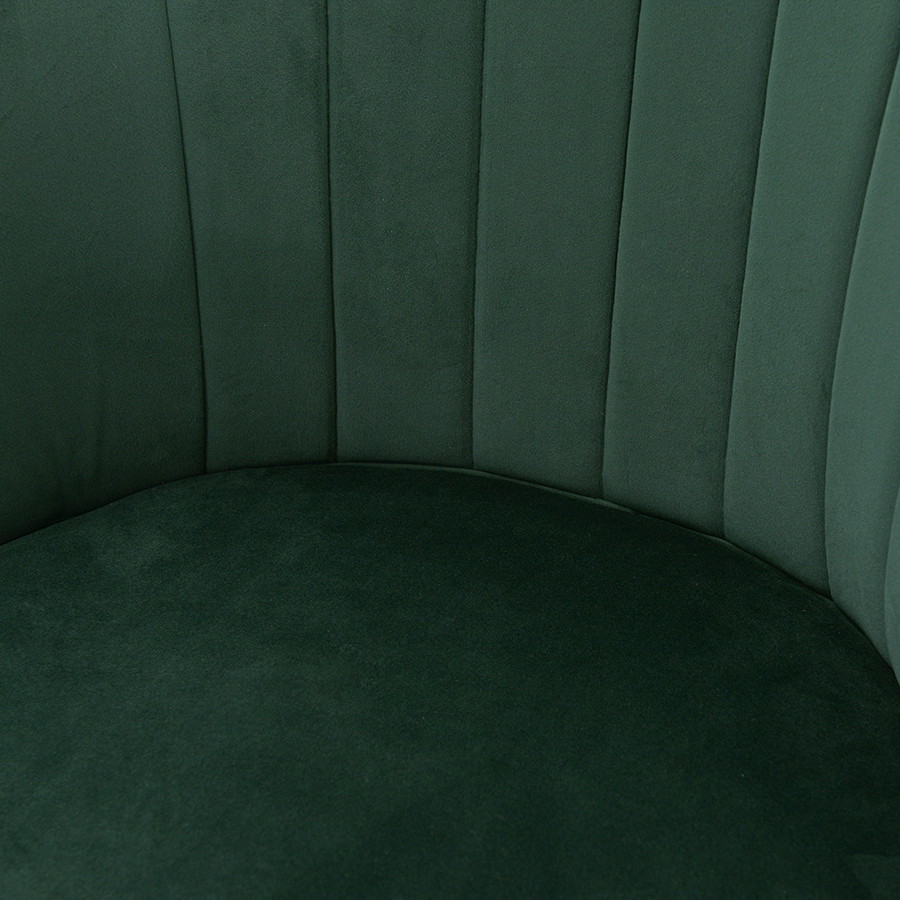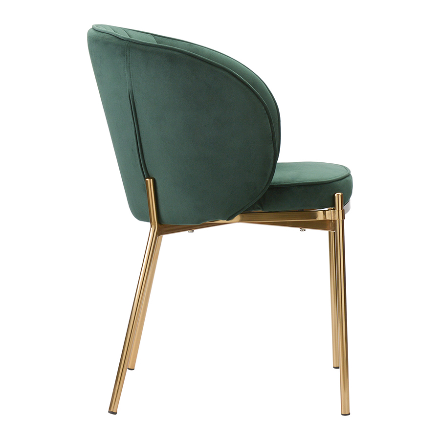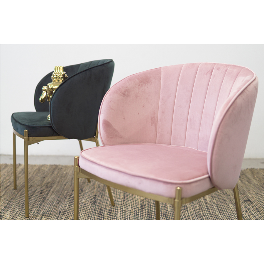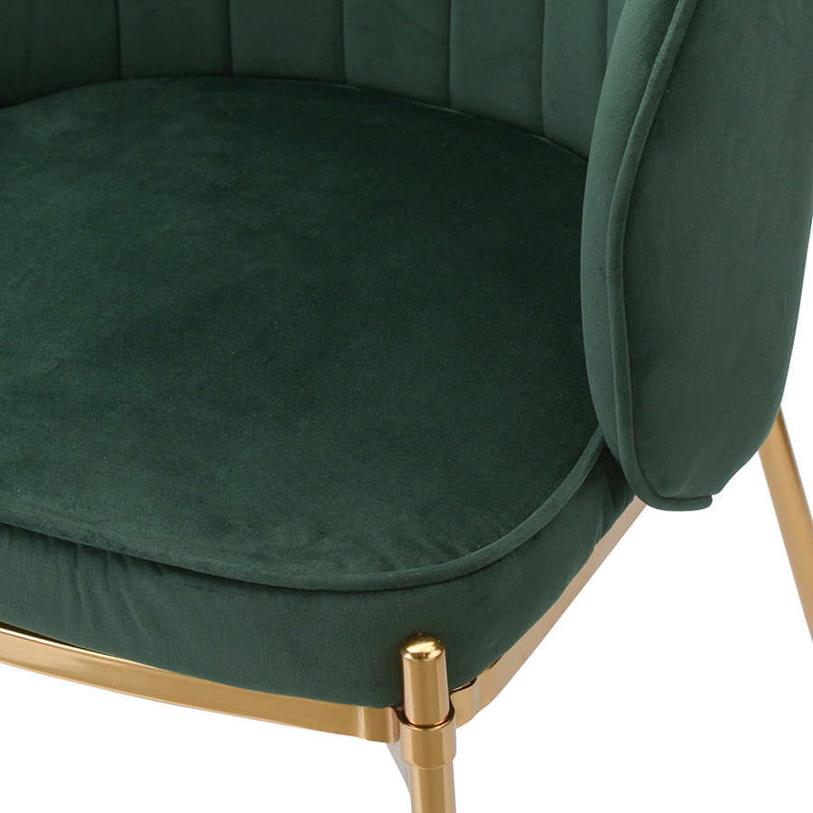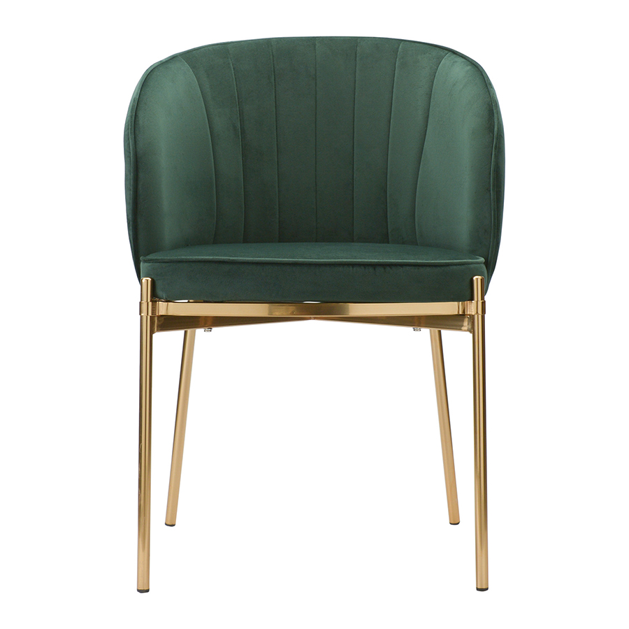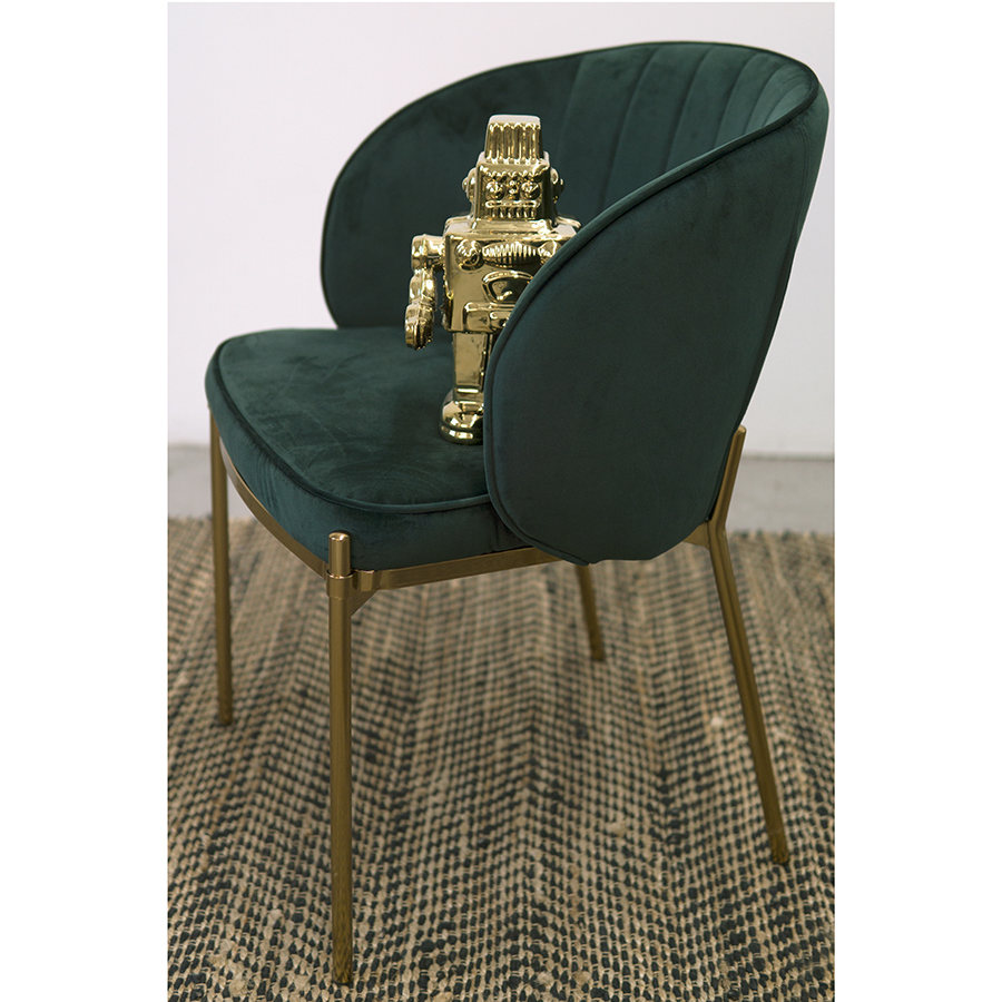 Комфорт во время отдыха на стуле создается за счет мягкого сиденья с наполнителем из пенополиуретана и высокой закругленной спинки. Обивка из бархатистого велюра, украшенная декоративной строчкой, придает модели особый шарм. Эстетический потенциал материала настолько высок, что ему сложно найти конкурентов. Помимо презентабельного вида и приятных тактильных ощущений, ткань обладает хорошими эксплуатационными характеристиками, такими как прочность, износоустойчивость и долговечность. Ножки мебели выполнены из стали, что обеспечивает конструкции надежность и защиту от коррозии.