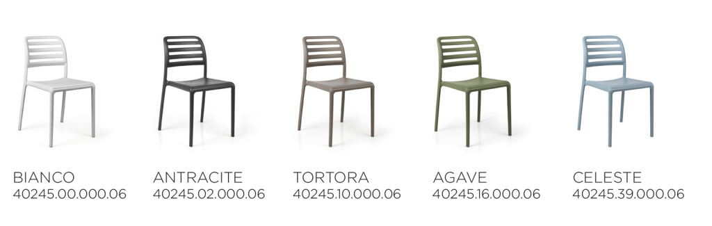 Стул Costa Bistrot из стеклопластика с решетчатой спинкой. Бесшовный трубчатый каркас с закругленными углами и профилем. Легкий, простой в использовании и штабелируемый.