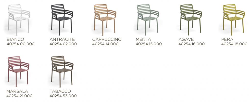 Свежая, легкая и эргономичная, Doga - это новая очаровательная коллекция уличной мебели: Кресла с подлокотниками и без них, кресло для отдыха и моноблочный журнальный столик из стеклопластика (полипропилен и стекловолокно). Вся коллекция была вдохновлена решетчатым дизайном, но Рафаэлло Галиотто, ее дизайнер, придал ей современный оттенок. Плавные линии спинки и сиденья стульев характеризуются игрой заполнений и пустот, отмеченных последовательностью горизонтальных планок.