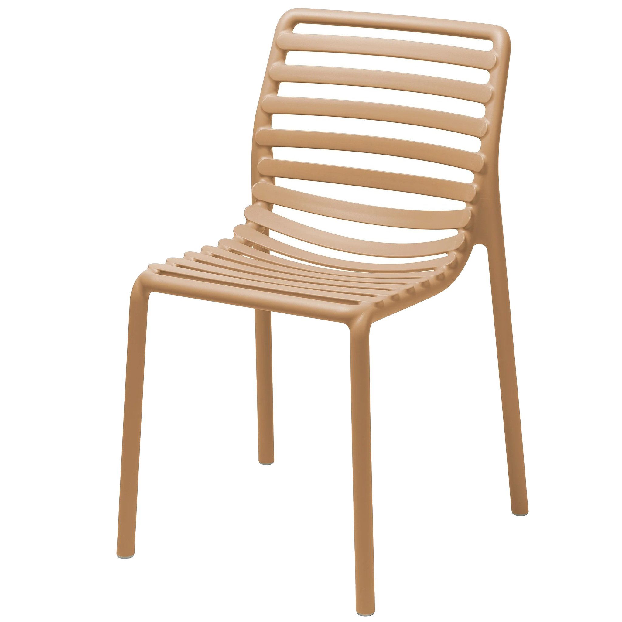 Свежая, легкая и эргономичная, Doga - это новая очаровательная коллекция уличной мебели: Кресла с подлокотниками и без них, кресло для отдыха и моноблочный журнальный столик из стеклопластика (полипропилен и стекловолокно). Вся коллекция была вдохновлена решетчатым дизайном, но Рафаэлло Галиотто, ее дизайнер, придал ей современный оттенок. Плавные линии спинки и сиденья стульев характеризуются игрой заполнений и пустот, отмеченных последовательностью горизонтальных планок.