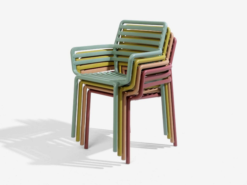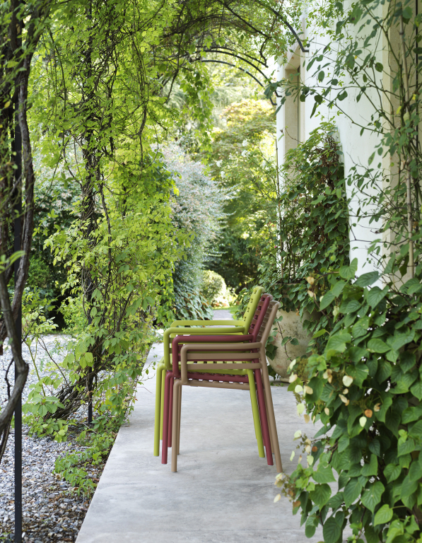 Кресло Doga станет отличным решением для обстановки обеденных зон или зон отдыха на свежем воздухе сферы Contract, но также оно отлично впишется в частные интерьеры. Эстетичная и функциональная модель максимально практична в использовании: с легкостью штабелируется, дезинфицируется и полностью перерабатывается.