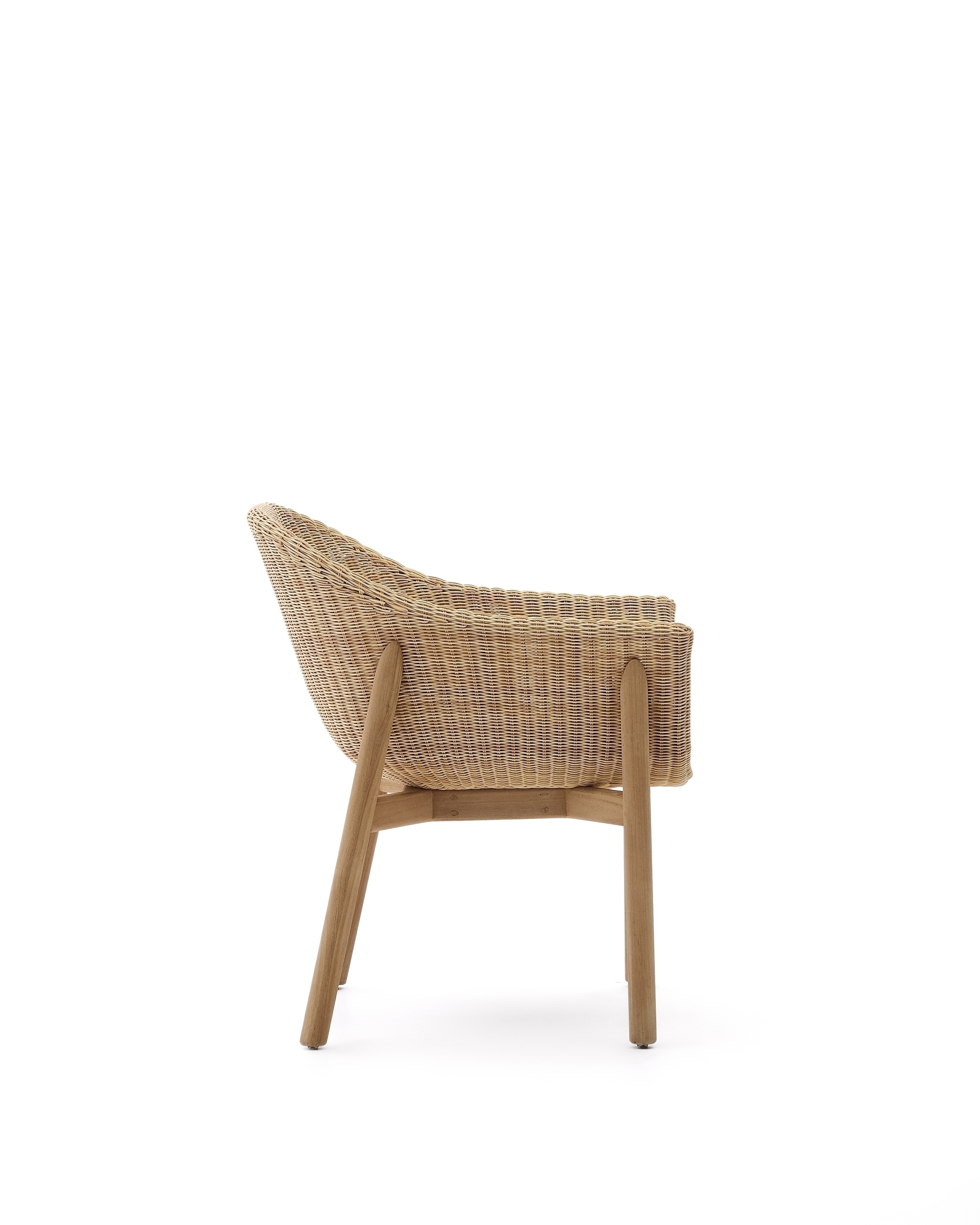Коллекция Galea, разработанная Made Studio для Kave Home, — это дань уважения традиционному мастерству, адаптированному к современным потребностям. Каждое изделие — это идеальное сочетание эксклюзивного дизайна и функциональности, созданное на века и гармонично вписывающееся в любое пространство на улице или в помещении. Твердое дерево тикового дерева, сертифицированное FSC 100%™, не только гарантирует экологичность и ответственное лесопользование, но и дарит естественное тепло, которое подчеркивает красоту каждого изделия. Синтетический ротанг ручной работы, имитирующий плетение, обеспечивает исключительную устойчивость к атмосферным воздействиям и очень прост в уходе. Комфорт и практичность лежат в основе этой коллекции. Подушки со съемными чехлами, покрытыми сетчатой пеной, которая пропускает воду через подушку, не задерживаясь внутри, и быстро сохнет, разработаны таким образом, чтобы обеспечить комфорт пользователя, подходящего для использования на открытом воздухе. Чтобы сохранить натуральность этих изделий с течением времени, мы рекомендуем наносить средство Sterina wood protector не реже двух раз в год.