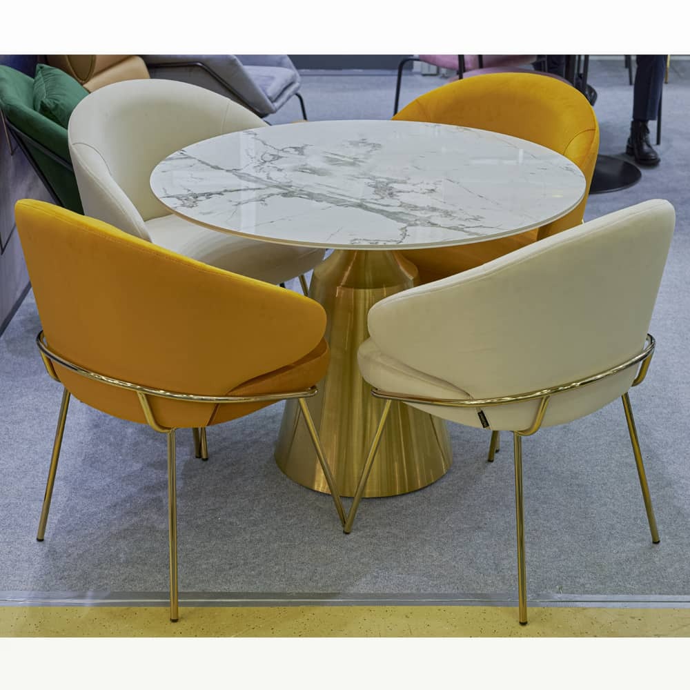 Ножки выполнены из полированной нержавеющей стали, они не подвержены коррозии и при правильном уходе сохранят свой первоначальный вид 50 лет. Все видимые сварочные швы на ножках тщательно отполированы. Напыление нитрид титана, обеспечивает ножкам натуральный цвет золота.