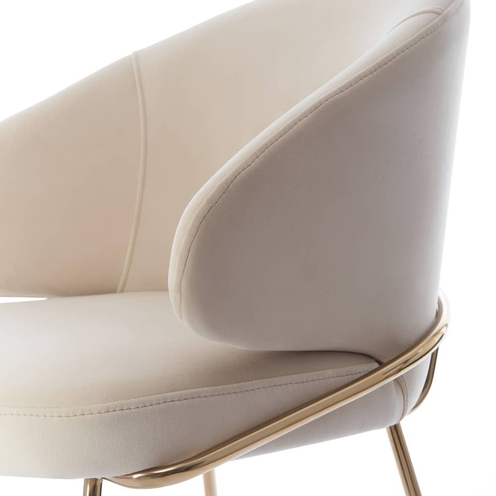 Полукресло Lime имеет широкую изогнутую спинку и мягкое сиденье, которые обеспечивают максимальный уровень комфорта. Ножки выполнены из полированной нержавеющей стали, они не подвержены коррозии и при правильном уходе сохранят свой первоначальный вид 50 лет. Все видимые сварочные швы на ножках тщательно отполированы. Напыление нитрид титана, обеспечивает ножкам натуральный цвет золота. Велюровая обивка обеспечивает невероятную мягкость и красивый нежный цвет, износостойкость 100 000 циклов.