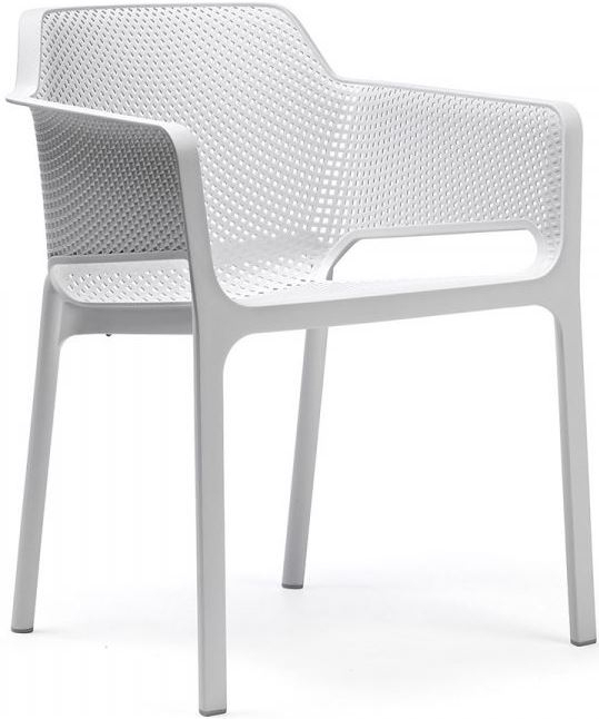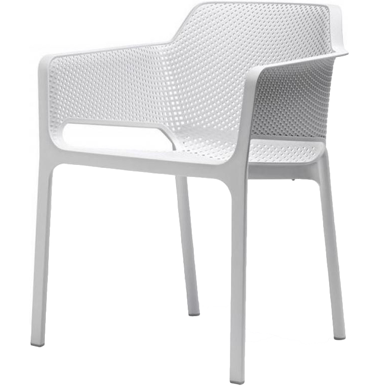 Net – это моноблочная модель из стеклопластика с перфорированным рисунком, который равномерно распределен по трехмерной поверхности сиденья. Материалы не подвержены воздействию УФ-излучения, благодаря этому кресло долго сохраняет свой первоначальный вид и не выцветает на солнце. Кресло оснащено нескользящими накладками на ножках, поэтому его можно разместить возле бассейна, а также оно может штабелироваться, что облегчает его хранение.