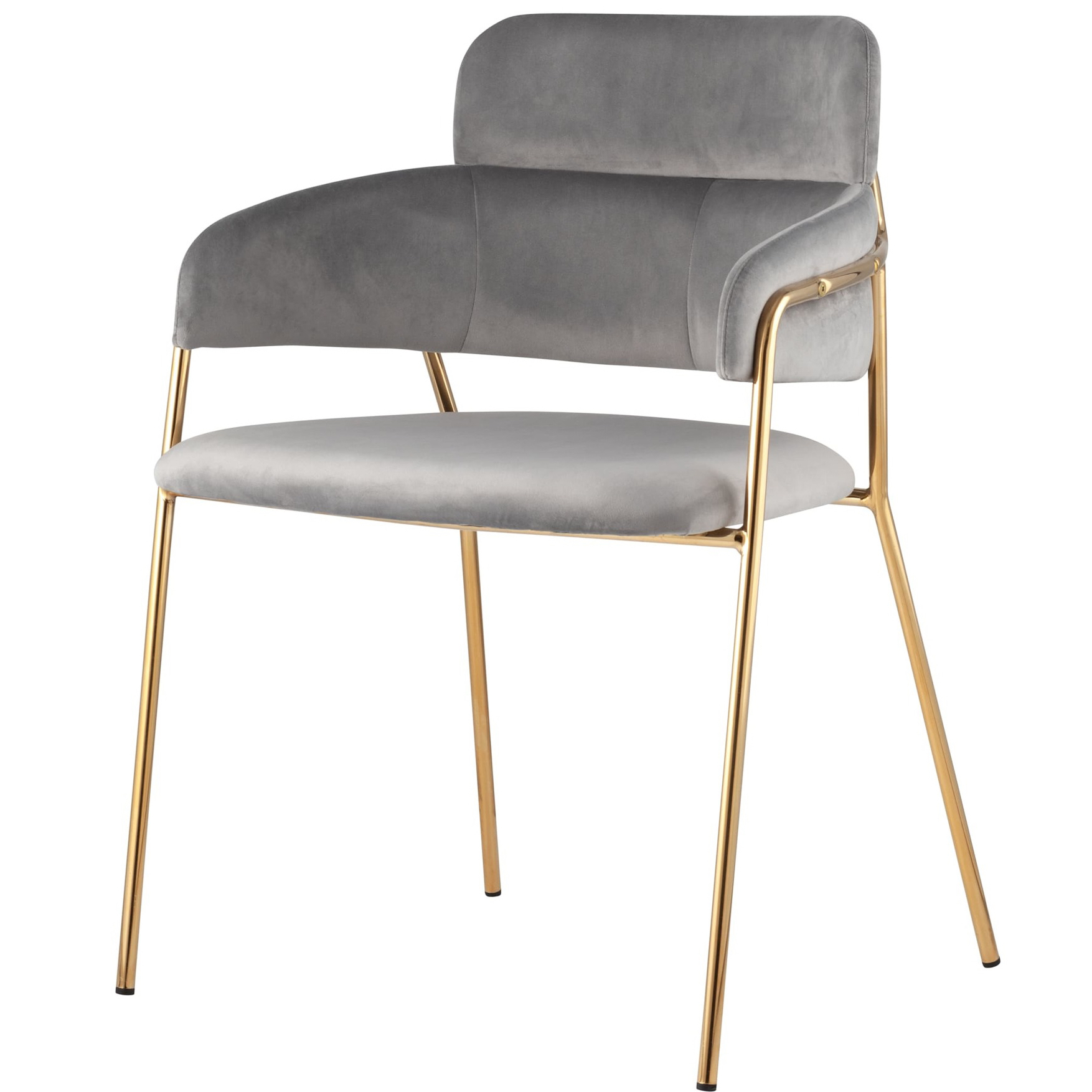 Стильный стул с оригинальной формой спинки, высокой поддержкой и подлокотниками. В качестве обивки используется мягкий велюр. Металлический каркас золотого цвета огибает спинку и выступает аккуратным акцентом модели. Широкое сиденье обеспечивает удобную посадку и уют.