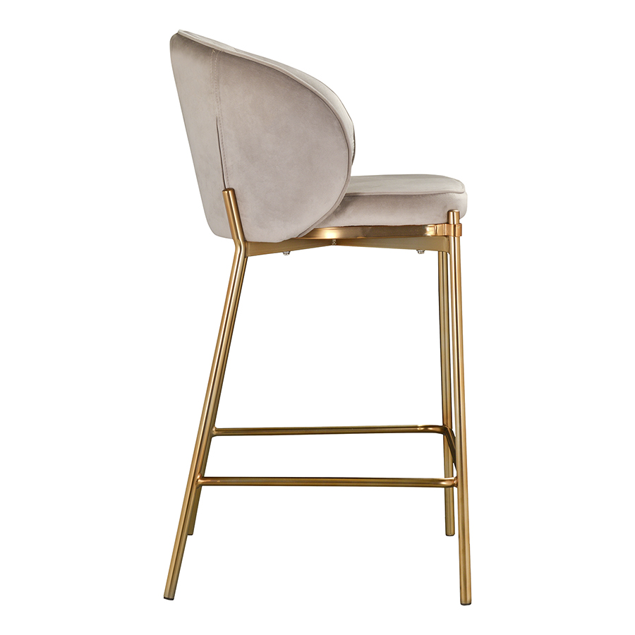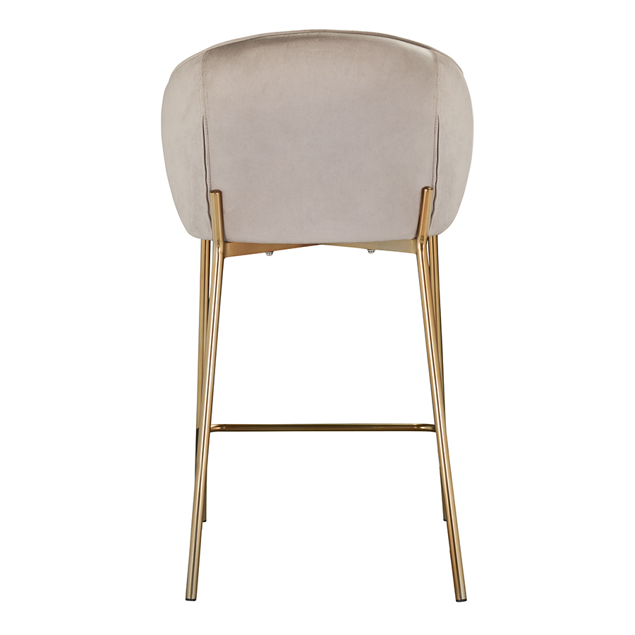 Комфорт во время отдыха на полубарном стуле создается за счет мягкого сиденья с наполнителем из пенополиуретана и высокой закругленной спинки. Обивка из бархатистого велюра, украшенная декоративной строчкой, придает модели особый шарм. Эстетический потенциал материала настолько высок, что ему сложно найти конкурентов. Помимо презентабельного вида и приятных тактильных ощущений, ткань обладает хорошими эксплуатационными характеристиками, такими как прочность, износоустойчивость и долговечность. Ножки мебели выполнены из железа с гальваническим покрытием, что обеспечивает конструкции надежность.