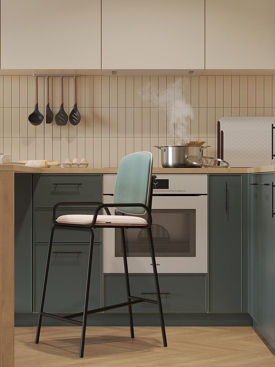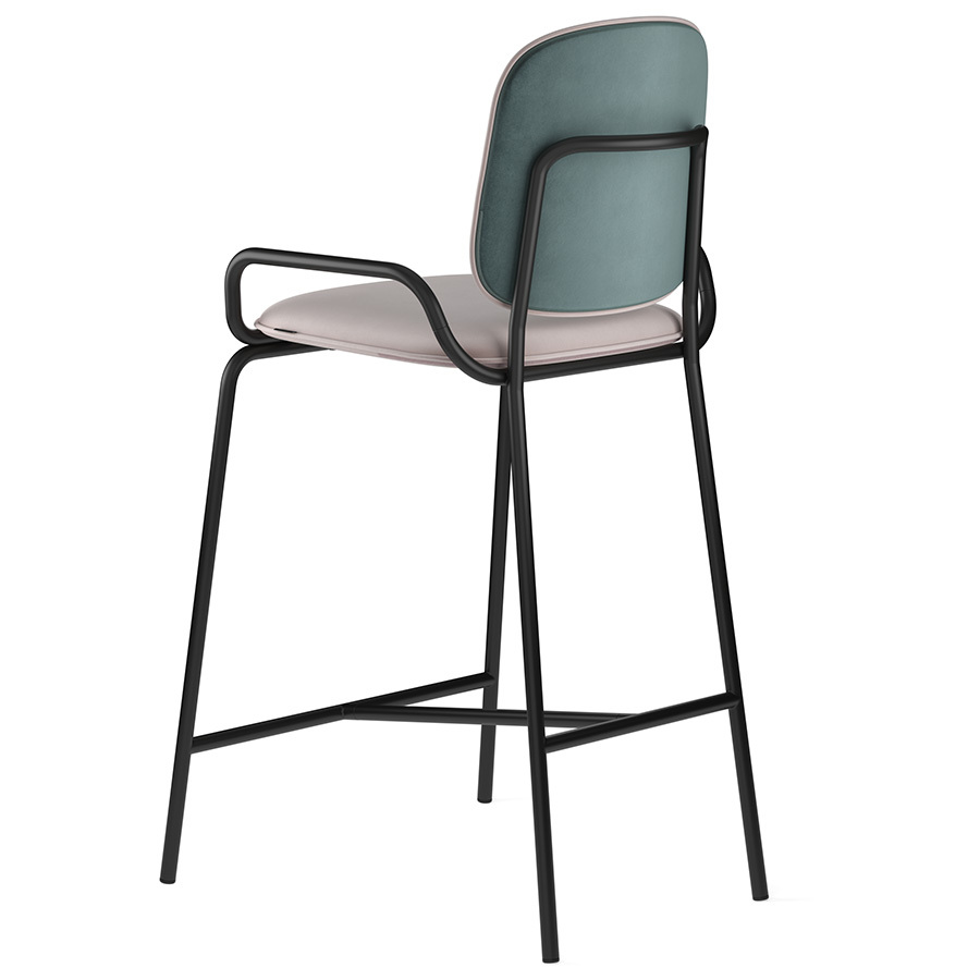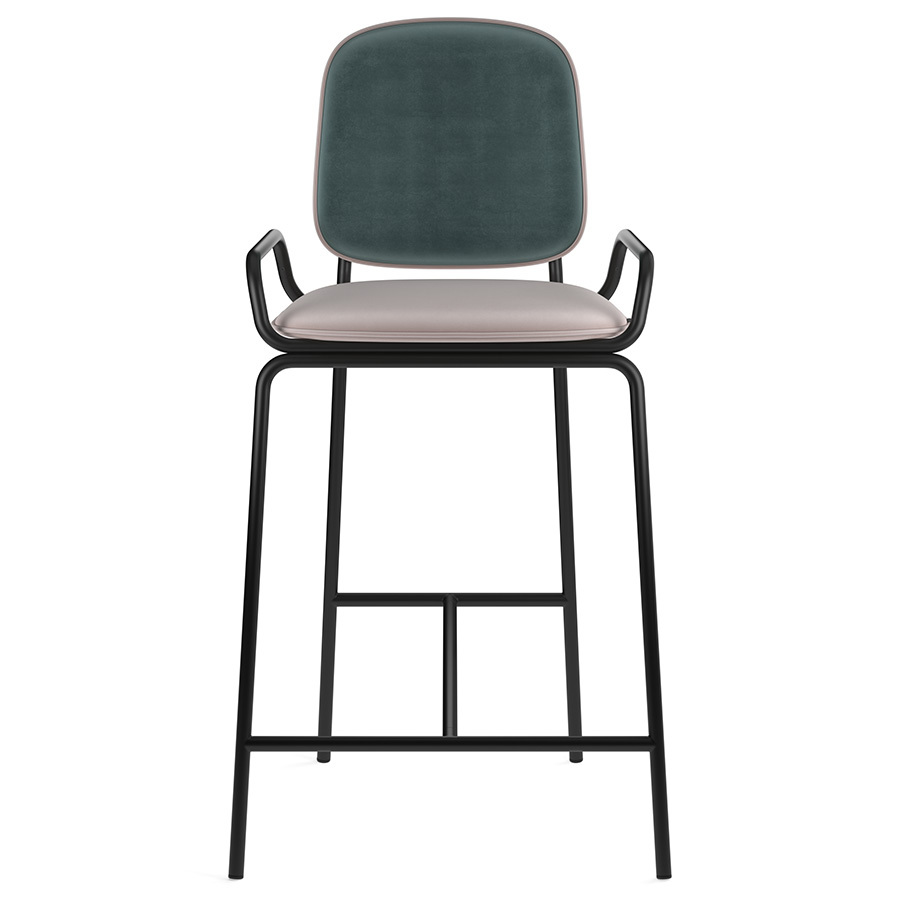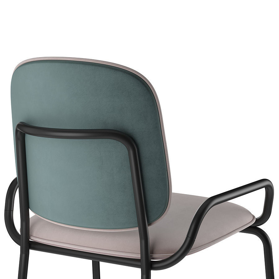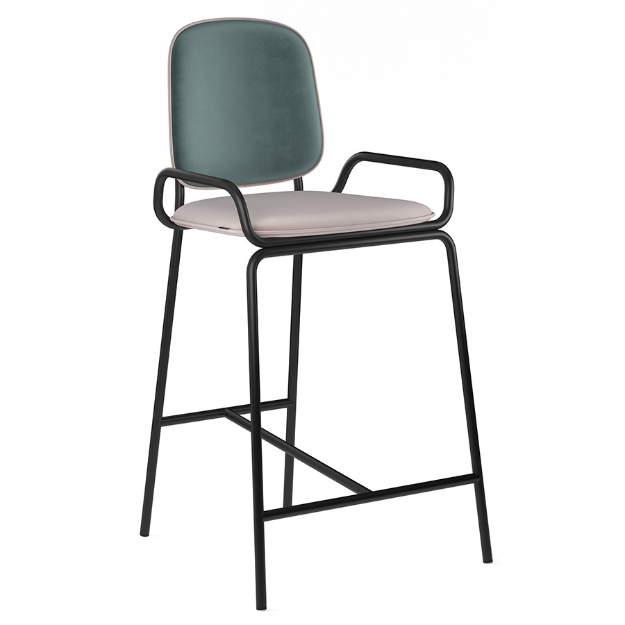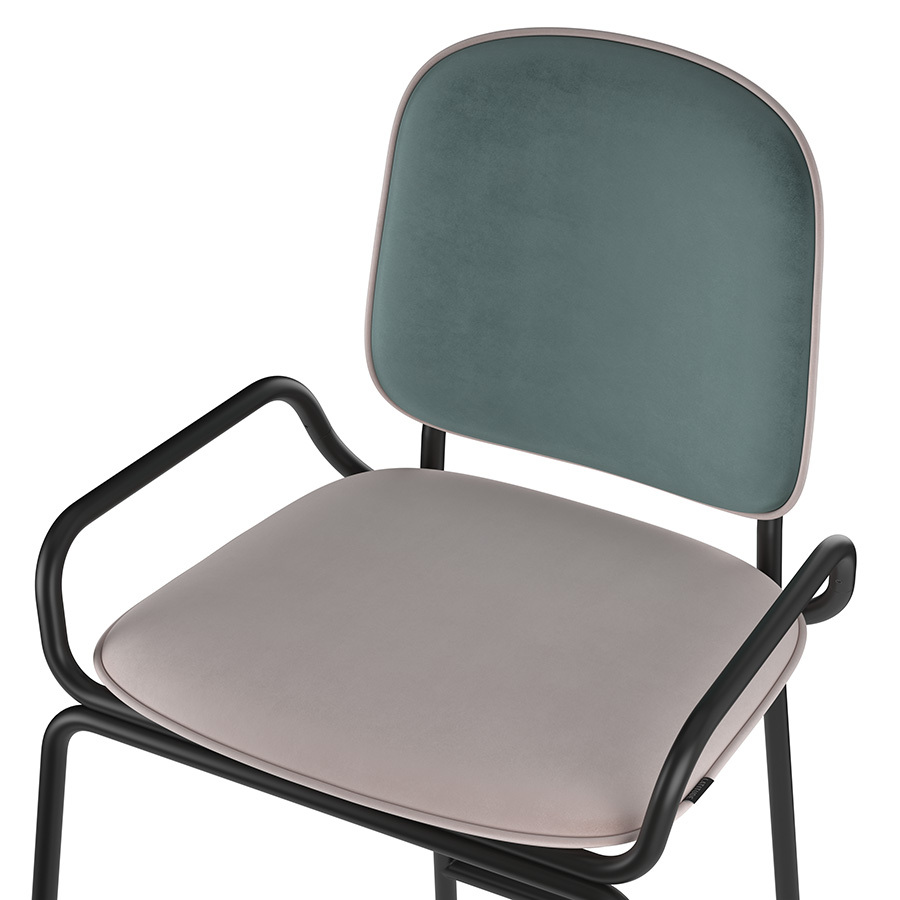 Коллекция Ror – это мебель с индивидуальным характером. Отправной точкой создания линейки стало динамичное движение, воплощенное в логотипе Олимпиады 80, где беговые дорожки образуют силуэт Спасской башни. Стул полубарный Double Frame имеет удобную посадку за счет высокой спинки и широкого основания. Ножки плавно переходят в подлокотники и в нижней части соединяются металлической рамой, которая служит подставкой для ног. Такое дизайнерское решение создает дополнительный комфорт во время сидения. Стальной каркас с порошковым покрытием делает конструкцию прочной и надежной, а мягкий велюр с бархатистой текстурой обеспечивает приятные тактильные ощущения. Используемый в качестве наполнителя пенополиуретан отличается оптимальной плотностью и жесткостью. Все материалы отвечают высоким стандартам практичности, долговечности и экологической безопасности. Стул украсит интерьер кафе и ресторана, а также прекрасно подойдет для оформления обеденной зоны и кухонного острова в доме или квартире. Материалы: сталь, фанера, 100% пенополиуретан, 100% полиэстер. Размеры: 52,7х53,9х98,5 см. Цвет: черный/зеленый/розовый. Загрязнения удалять с поверхностей мыльным раствором воды при помощи мягкой губки или салфетки.