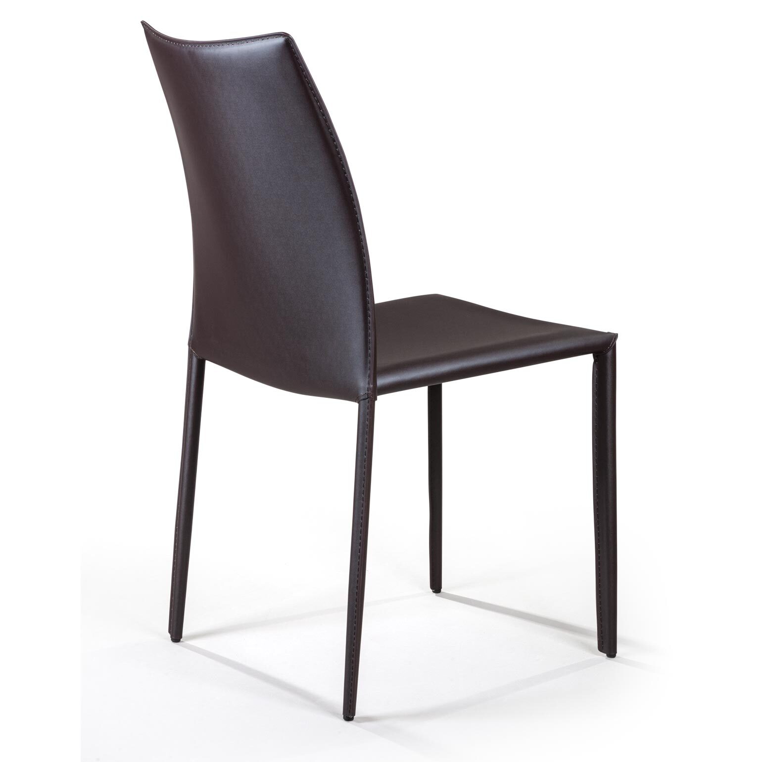 Металлические ножки как продолжение спинки и сиденья обтянуты кожей такого же цвета.