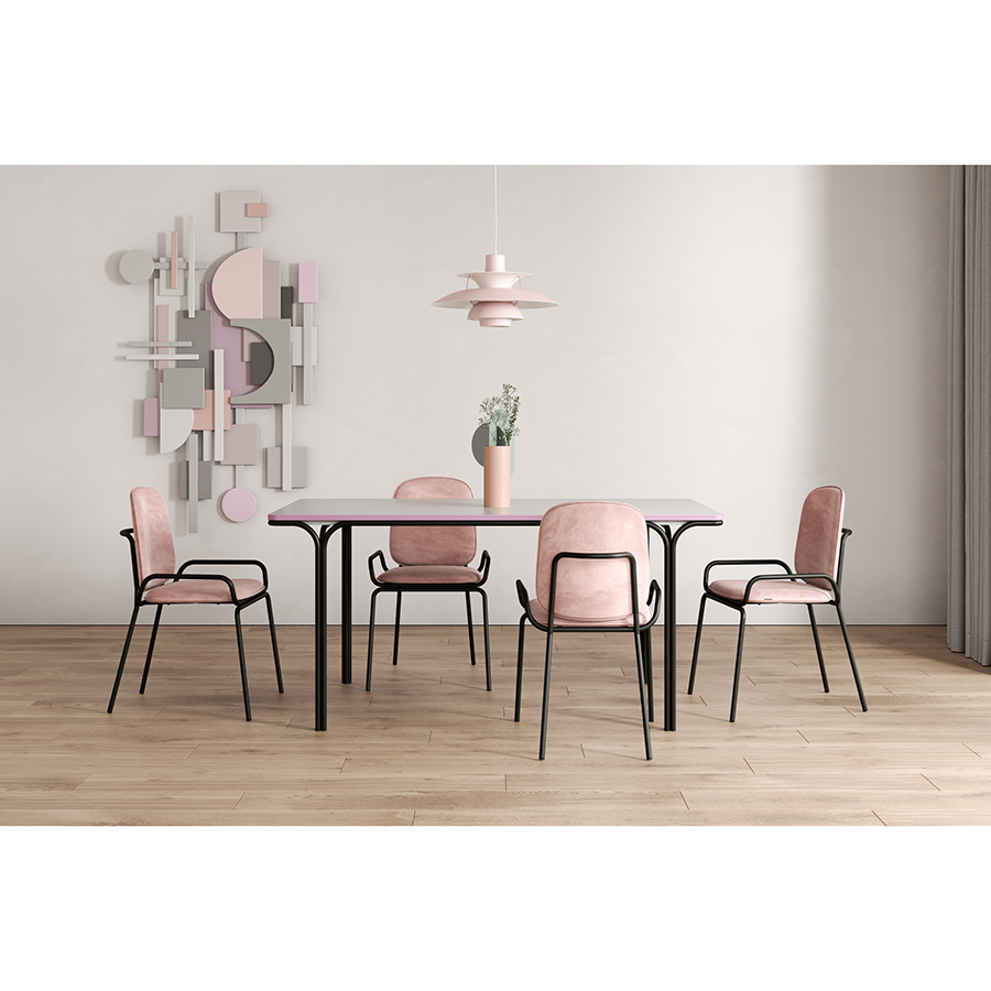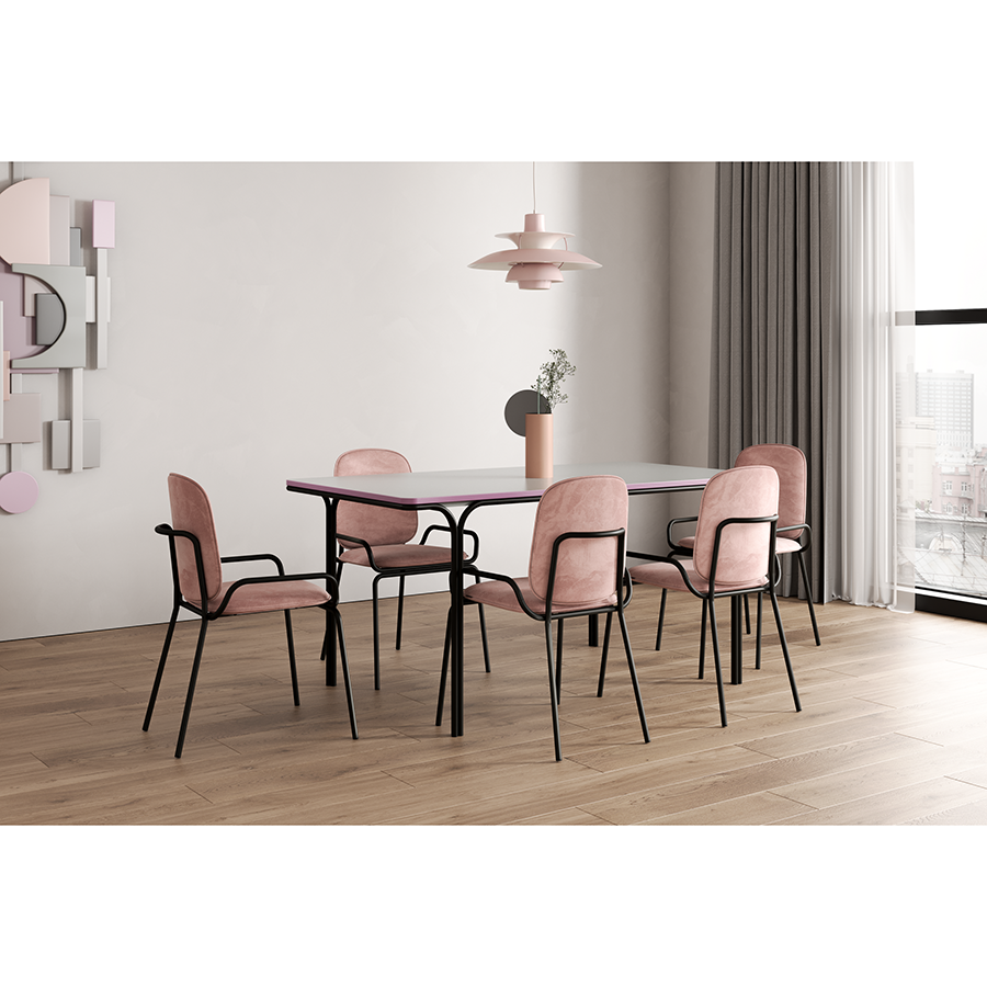 Коллекция Ror - это мебель с индивидуальным характером. Стул Double Frame имеет удобную посадку за счет высокой спинки и широкого сиденья. Отсутствие острых углов создает легкий, гармоничный силуэт. Стальной каркас с порошковым покрытием делает конструкцию прочной и надежной, а мягкий велюр с бархатистой текстурой обеспечивает тактильный комфорт. Ткань обивки обладает высокими показателями износостойкости. Используемый в качестве наполнителя пенополиуретан отличается комфортной плотностью и жесткостью. Все материалы отвечают высоким стандартам практичности, долговечности и экологической безопасности. Стул украсит собой любой современный интерьер: подойдет для оформления обеденной группы, рабочего пространства или зоны отдыха. Материалы: сталь, фанера, 100% пенополиуретан, 100% полиэстер. Размеры: 49,9х55,7х81,9 см. Максимальная нагрузка: 102 кг. Цвет: черный/розовый. Загрязнения удалять с поверхностей мыльным раствором воды при помощи мягкой губки или салфетки.