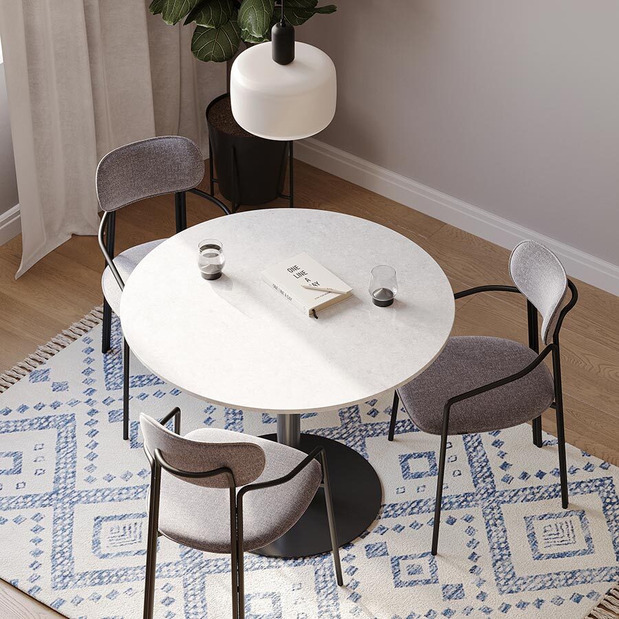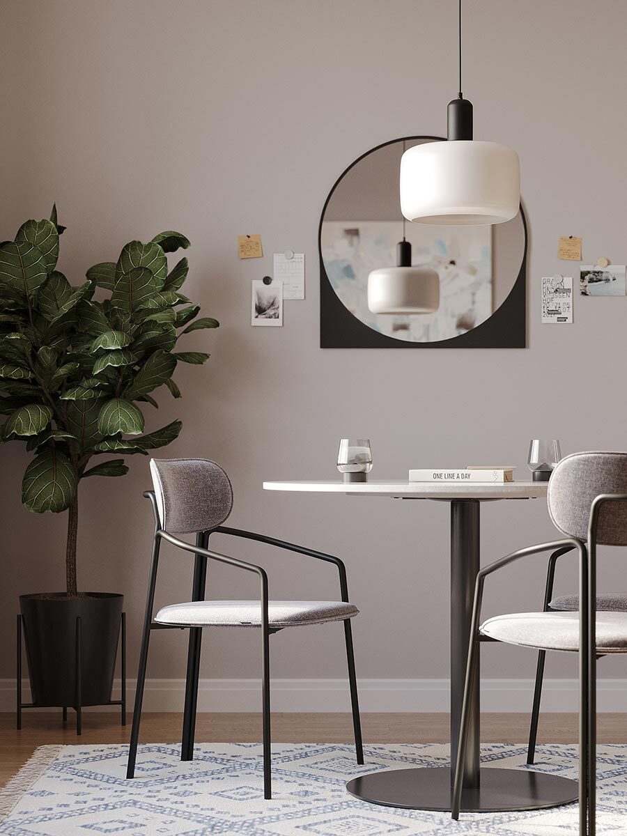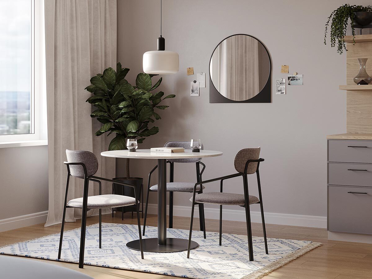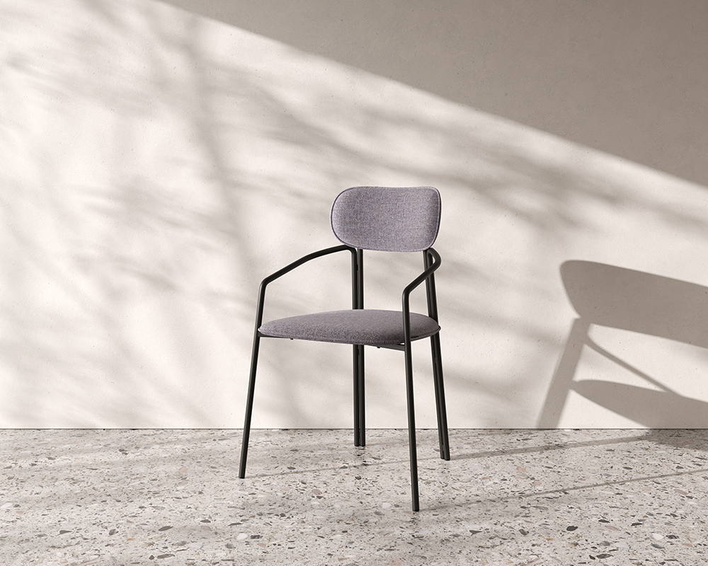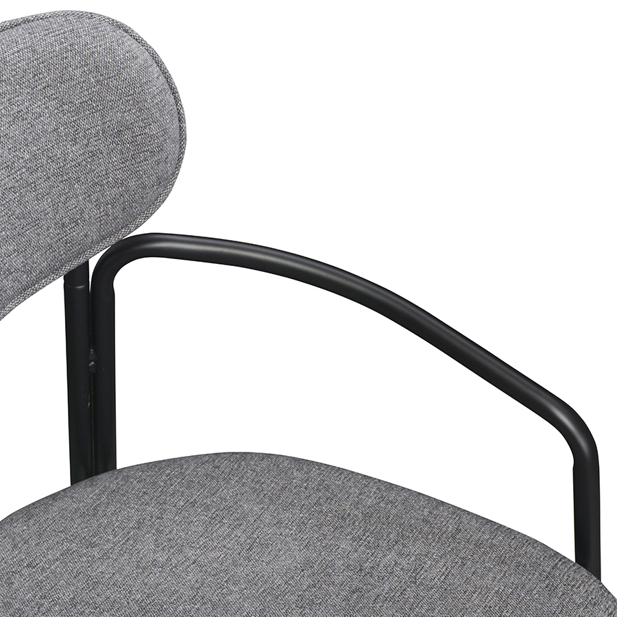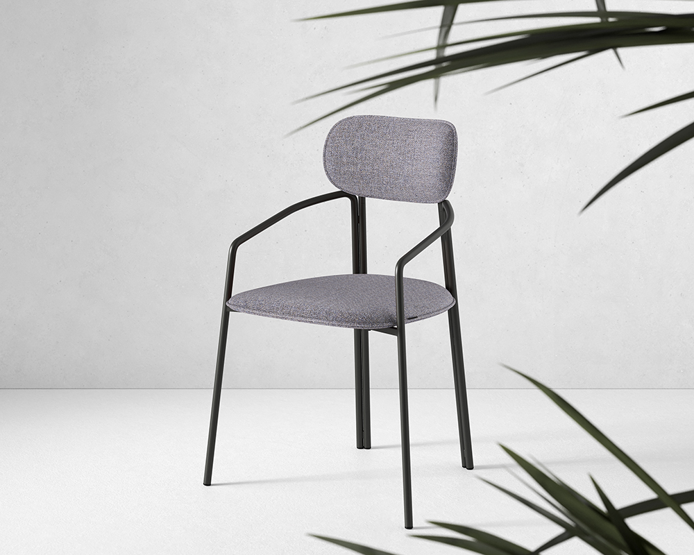 Коллекция Ror - это мебель с индивидуальным характером. Каркас стула Round состоит из трех стремящихся вверх элементов, которые образуют округлый, словно окутывающий корпус. За счет отсутствия прямых углов создается легкий, гармоничный силуэт. Стальное основание с порошковым покрытием делает конструкцию прочной и надежной, а меланжевая ткань обивки обладает высокими показателями износостойкости. Используемый пенополиуретан отличается комфортной плотностью и жесткостью. Все материалы отвечают высоким стандартам практичности, долговечности и экологической безопасности. Стул украсит собой любой современный интерьер: подойдет для оформления обеденной группы, рабочего пространства или зоны отдыха. Материалы: сталь, фанера, 100% пенополиуретан, 100% полиэстер. Размеры: 56,9х48,6х83 см. Максимальная нагрузка: 102 кг. Цвет: черный/серый. Загрязнения удалять с поверхностей мыльным раствором воды при помощи мягкой губки или салфетки.