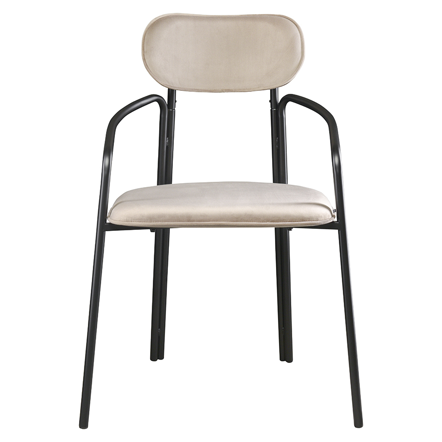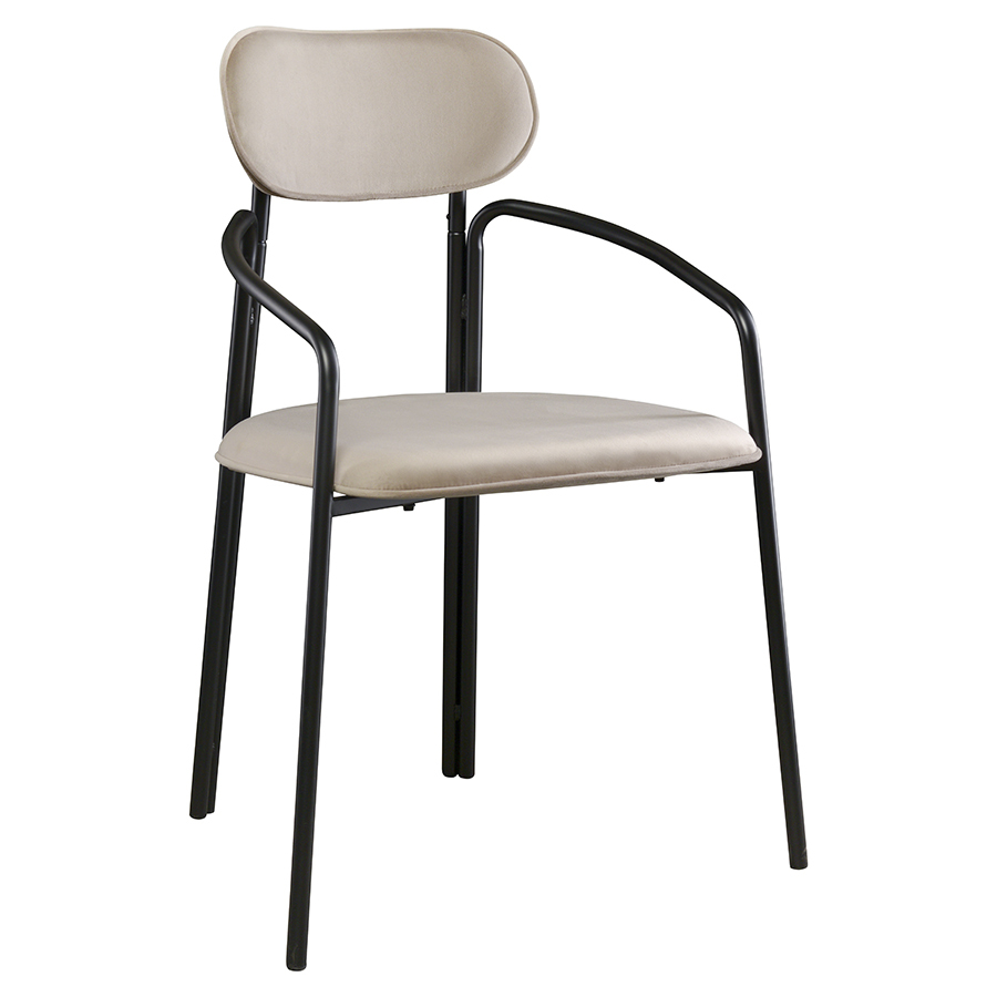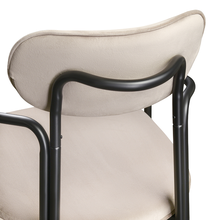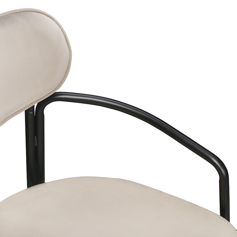 Коллекция Ror - это мебель с индивидуальным характером. Каркас стула Round состоит из трех стремящихся вверх элементов, которые образуют округлый, словно окутывающий корпус. За счет отсутствия прямых углов создается легкий, гармоничный силуэт. Стальное основание с порошковым покрытием делает конструкцию прочной и надежной, а мягкий велюр с бархатистой текстурой обеспечивает тактильный комфорт. Ткань обивки обладает высокими показателями износостойкости. Используемый пенополиуретан отличается комфортной плотностью и жесткостью. Все материалы отвечают высоким стандартам практичности, долговечности и экологической безопасности. Стул украсит собой любой современный интерьер: подойдет для оформления обеденной группы, рабочего пространства или зоны отдыха. Материалы: сталь, фанера, 100% пенополиуретан, 100% полиэстер. Размеры: 56,9х48,6х83 см. Максимальная нагрузка: 102 кг. Цвет: черный/бежевый. Загрязнения удалять с поверхностей мыльным раствором воды при помощи мягкой губки или салфетки.