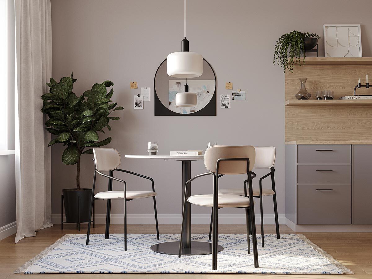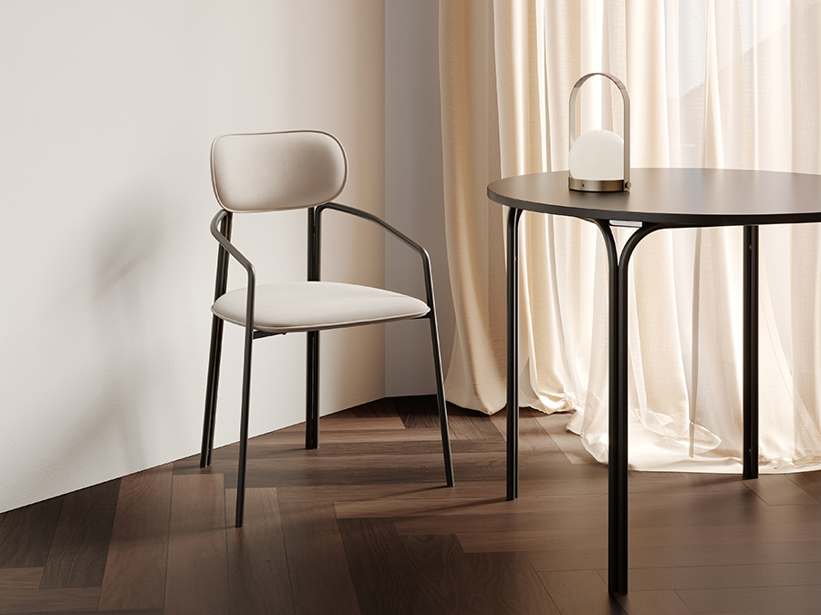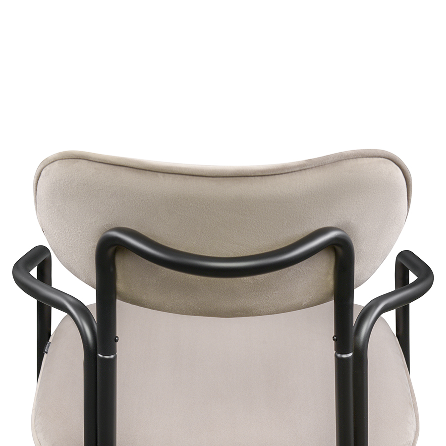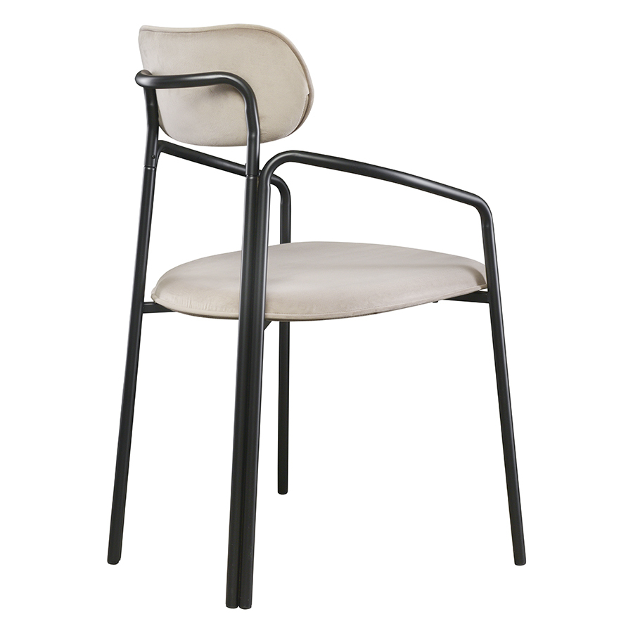 Коллекция Ror - это мебель с индивидуальным характером. Каркас стула Round состоит из трех стремящихся вверх элементов, которые образуют округлый, словно окутывающий корпус. За счет отсутствия прямых углов создается легкий, гармоничный силуэт. Стальное основание с порошковым покрытием делает конструкцию прочной и надежной, а мягкий велюр с бархатистой текстурой обеспечивает тактильный комфорт. Ткань обивки обладает высокими показателями износостойкости. Используемый пенополиуретан отличается комфортной плотностью и жесткостью. Все материалы отвечают высоким стандартам практичности, долговечности и экологической безопасности. Стул украсит собой любой современный интерьер: подойдет для оформления обеденной группы, рабочего пространства или зоны отдыха. Материалы: сталь, фанера, 100% пенополиуретан, 100% полиэстер. Размеры: 56,9х48,6х83 см. Максимальная нагрузка: 102 кг. Цвет: черный/бежевый. Загрязнения удалять с поверхностей мыльным раствором воды при помощи мягкой губки или салфетки.
