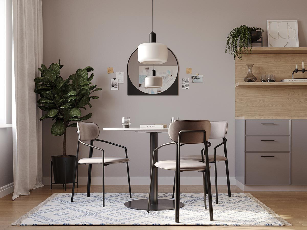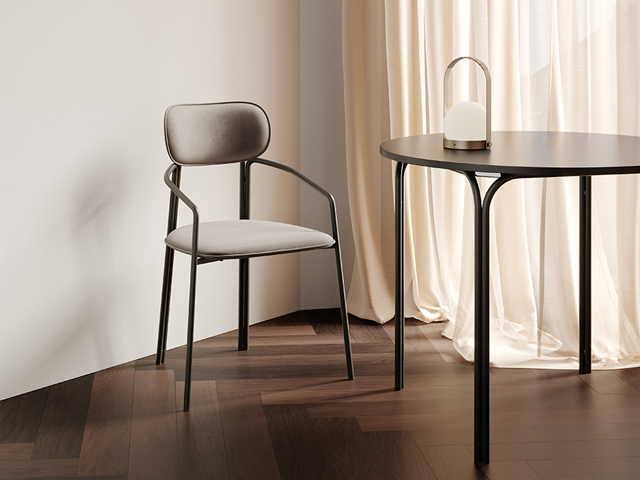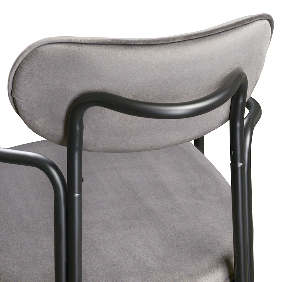 Коллекция Ror - это мебель с индивидуальным характером. Каркас стула Round состоит из трех стремящихся вверх элементов, которые образуют округлый, словно окутывающий корпус. За счет отсутствия прямых углов создается легкий, гармоничный силуэт. Стальное основание с порошковым покрытием делает конструкцию прочной и надежной, а мягкий велюр с бархатистой текстурой обеспечивает тактильный комфорт. Ткань обивки обладает высокими показателями износостойкости. Используемый пенополиуретан отличается комфортной плотностью и жесткостью. Все материалы отвечают высоким стандартам практичности, долговечности и экологической безопасности. Стул украсит собой любой современный интерьер: подойдет для оформления обеденной группы, рабочего пространства или зоны отдыха. Материалы: сталь, фанера, 100% пенополиуретан, 100% полиэстер. Размеры: 56,9х48,6х83 см. Максимальная нагрузка: 102 кг. Цвет: черный/серый. Загрязнения удалять с поверхностей мыльным раствором воды при помощи мягкой губки или салфетки.