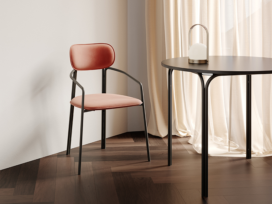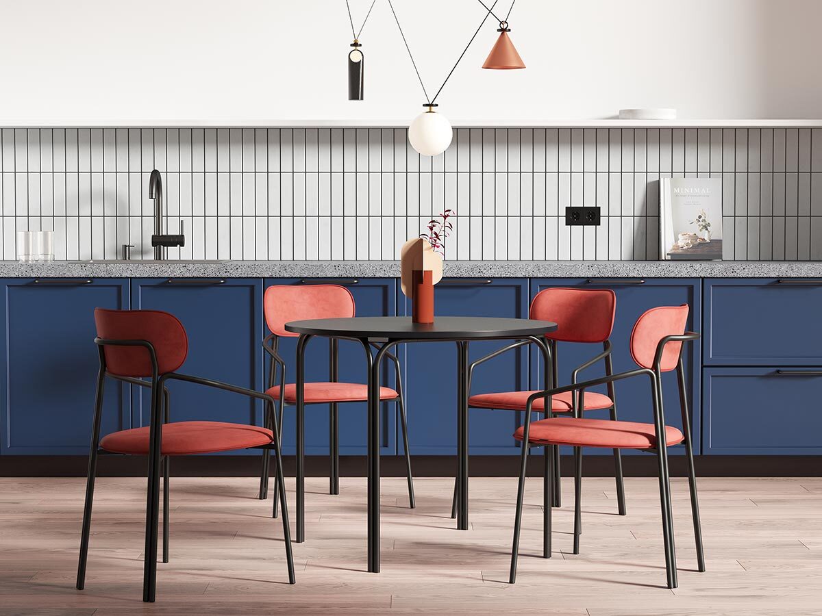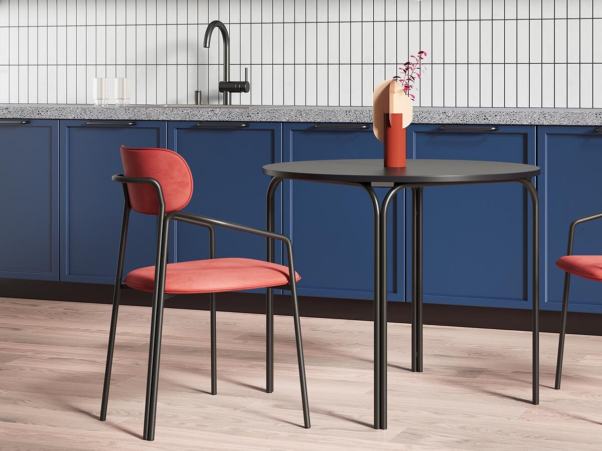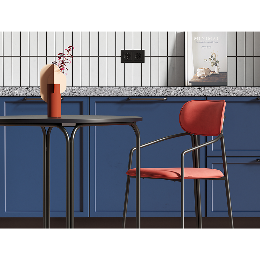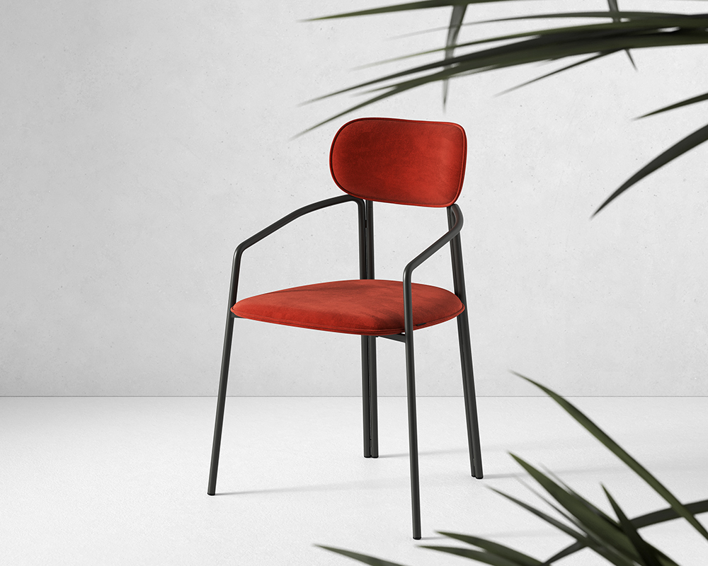 Коллекция Ror - это мебель с индивидуальным характером. Каркас стула Round состоит из трех стремящихся вверх элементов, которые образуют округлый, словно окутывающий корпус. За счет отсутствия прямых углов создается легкий, гармоничный силуэт. Стальное основание с порошковым покрытием делает конструкцию прочной и надежной, а мягкий велюр с бархатистой текстурой обеспечивает тактильный комфорт. Ткань обивки обладает высокими показателями износостойкости. Используемый пенополиуретан отличается комфортной плотностью и жесткостью. Все материалы отвечают высоким стандартам практичности, долговечности и экологической безопасности. Стул украсит собой любой современный интерьер: подойдет для оформления обеденной группы, рабочего пространства или зоны отдыха. Материалы: сталь, фанера, 100% пенополиуретан, 100% полиэстер. Размеры: 56,9х48,6х83 см. Максимальная нагрузка: 102 кг. Цвет: черный/темно-красный. Загрязнения удалять с поверхностей мыльным раствором воды при помощи мягкой губки или салфетки.