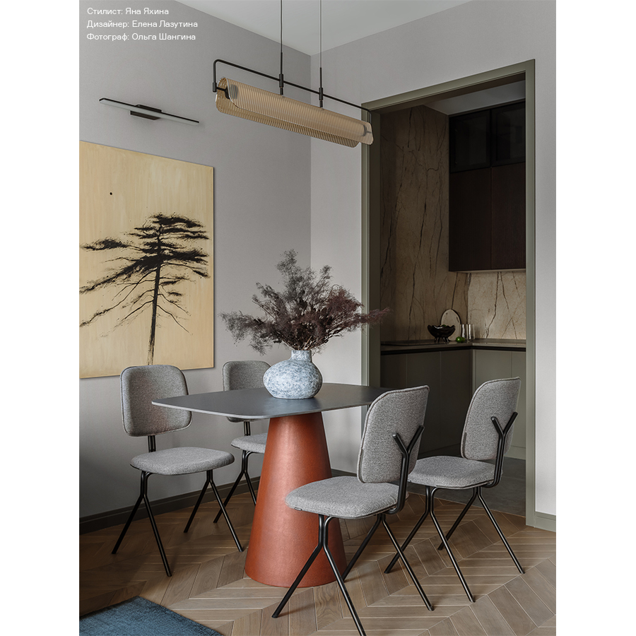Коллекция Ror – это мебель с индивидуальным характером. Отправной точкой создания линейки стало динамичное движение, воплощенное в логотипе Олимпиады 80, где беговые дорожки образуют силуэт Спасской башни. Стул Y имеет удобную посадку за счет высокой спинки и глубокого сиденья. Необычные ножки, расположенные под определенным углом, делают дизайн интересным и обеспечивают конструкции устойчивость. Плавные, скругленные формы создают легкий, гармоничный силуэт. Стальной каркас с порошковым покрытием делает стул прочным и надежным, а меланжевая ткань обивки обладает высокими показателями износостойкости. Используемый в качестве наполнителя пенополиуретан отличается комфортной плотностью и жесткостью. Все материалы отвечают высоким стандартам практичности, долговечности и экологической безопасности. Стул украсит собой любой современный интерьер: подойдет для оформления обеденной группы, рабочего пространства или зоны отдыха. Материалы: сталь, фанера, 100% пенополиуретан, 100% полиэстер. Размеры: 43,9х46,9х86,5 см. Максимальная нагрузка: 102 кг. Цвет: черный/серый. Загрязнения удалять с поверхностей мыльным раствором воды при помощи мягкой губки или салфетки.